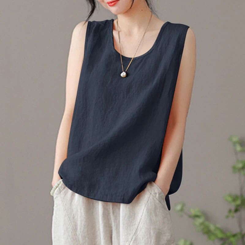 RBB Women's Elegant Sleeveless O-Neck Blouse – Solid Summer Tunic Top