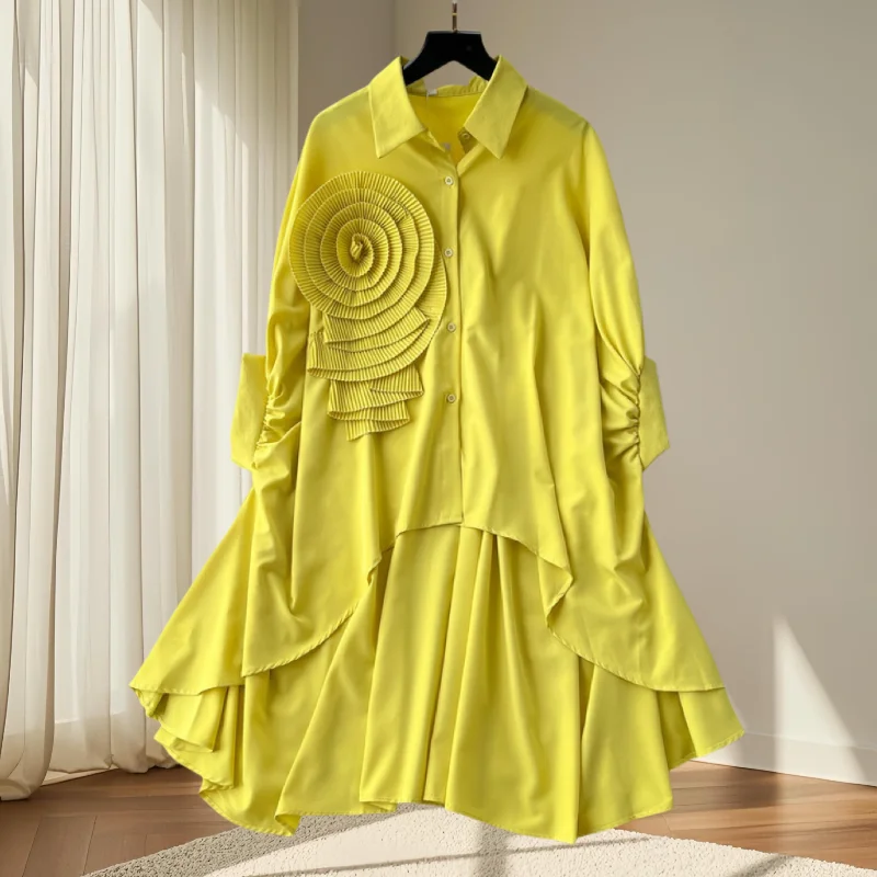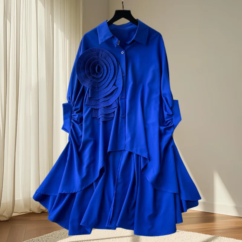 2025,New,European,Clothes,Loose,Blouse,Chic,Turndown Collar,Irregular,Three-dimensional flowers,Women,Batwing Sleeve,Tops,41293