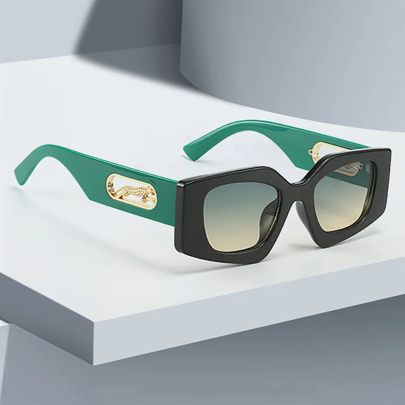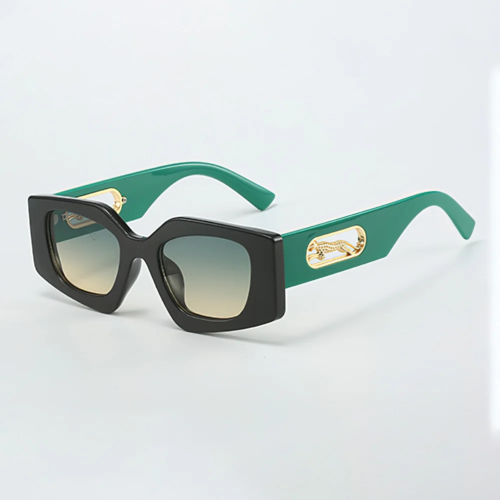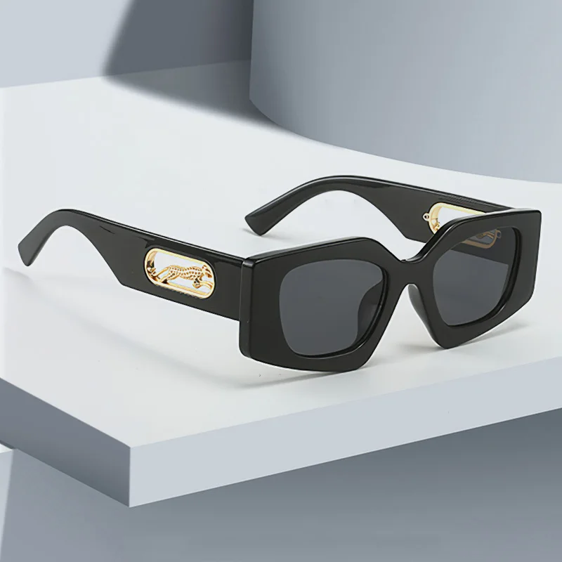 RBB Fashion Sunglasses – 2025 Luxury Geometric Eyewear for Women with Black Frame & Leopard Gold Decoration