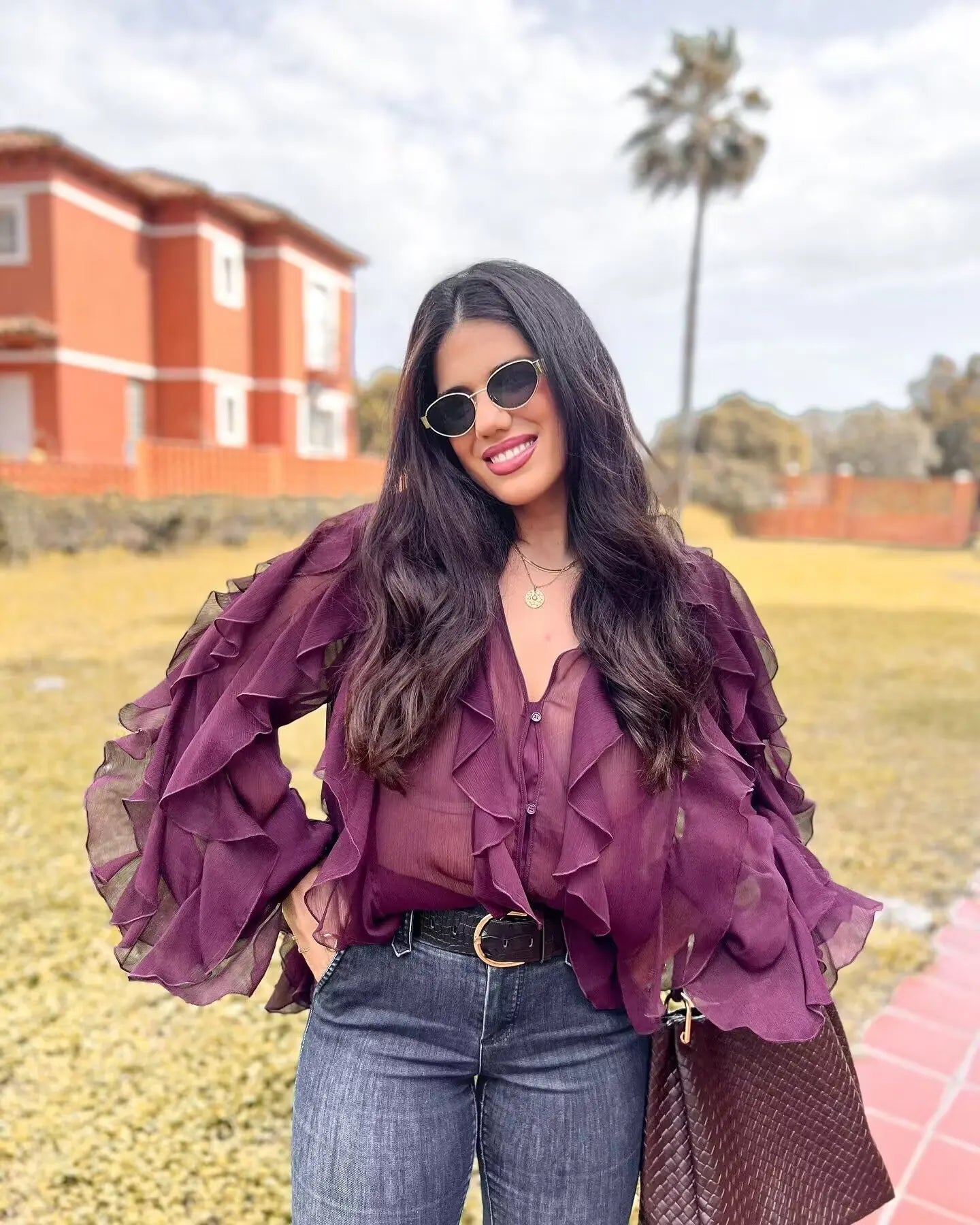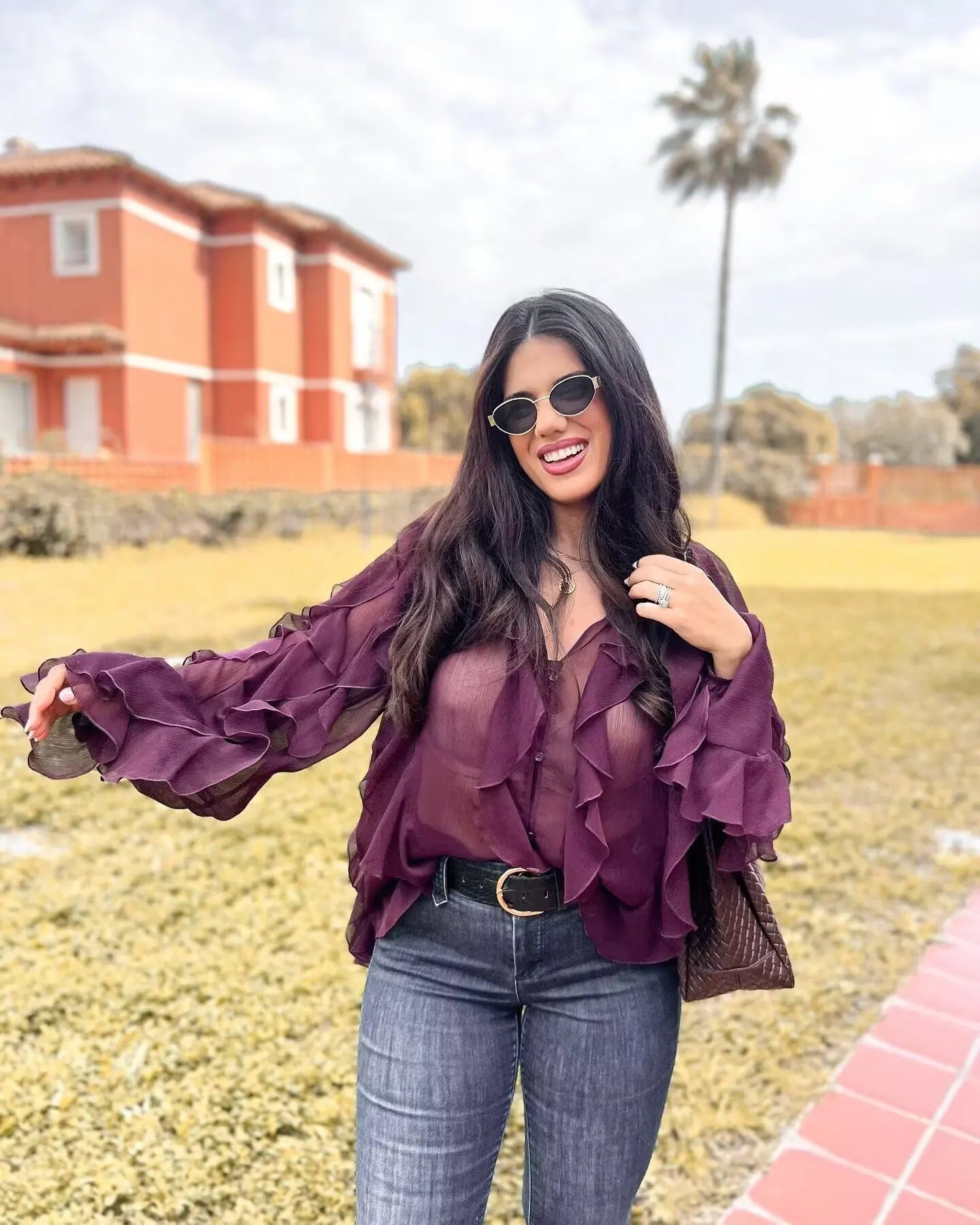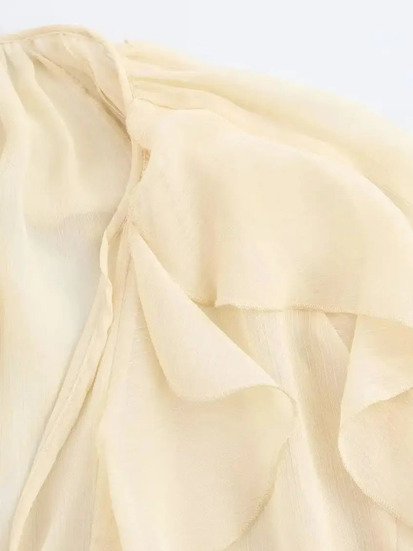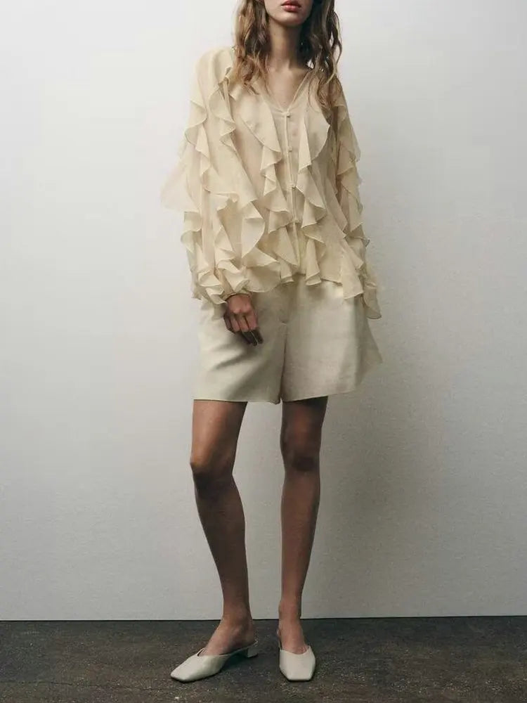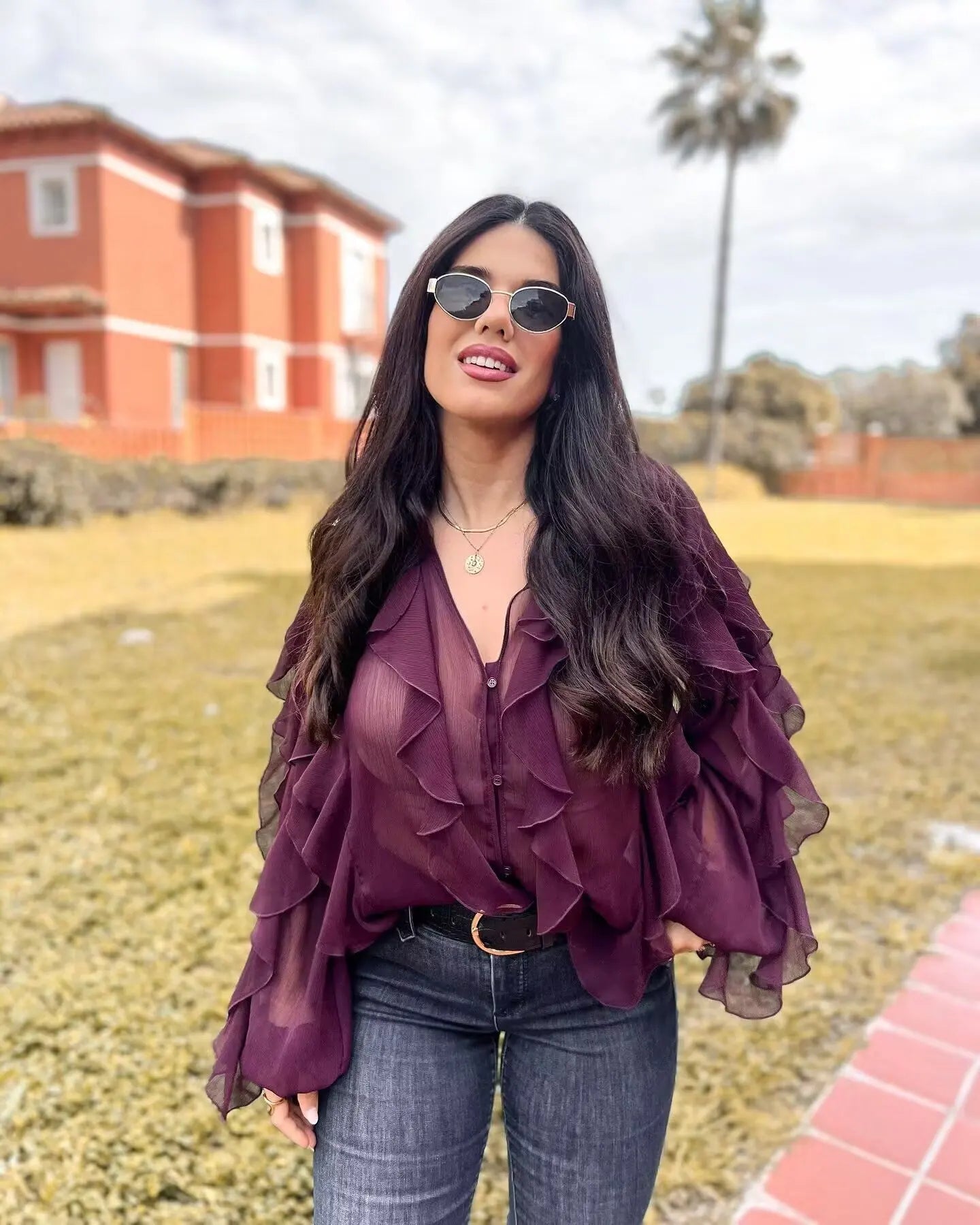 RBB Women's Summer V-Neck Ruffle Blouse – Sheer Tiered Button-Front Beach Top