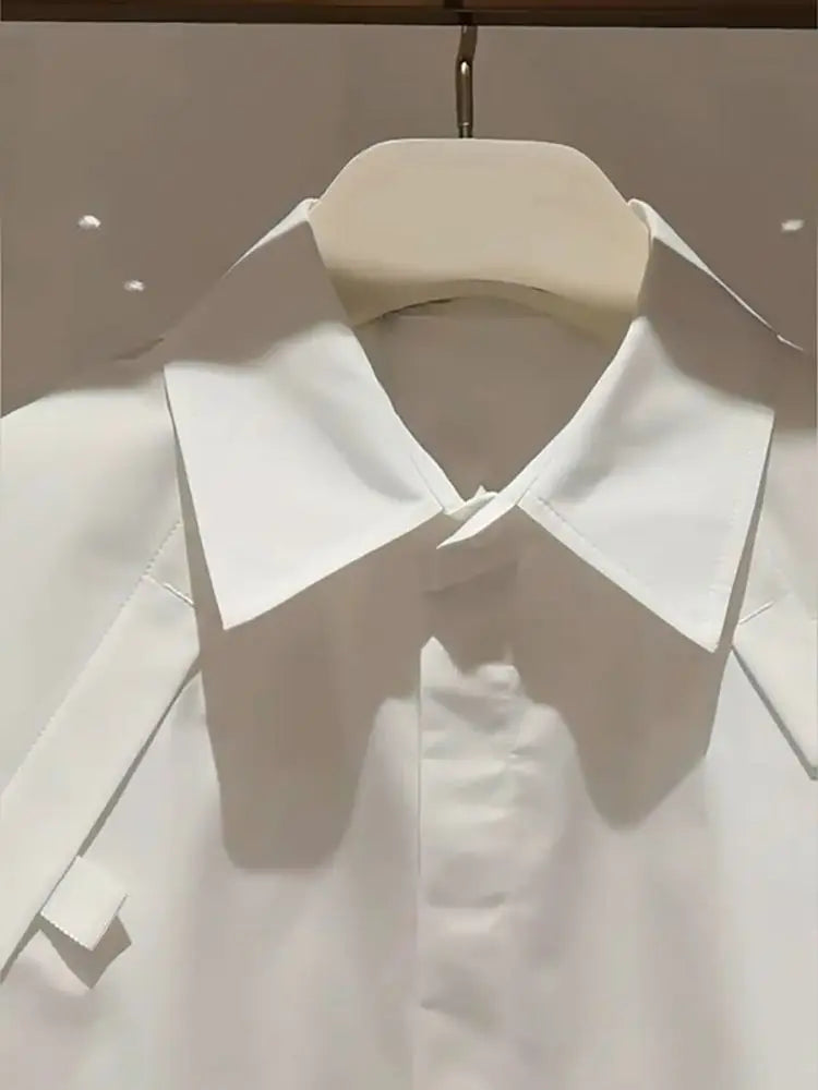 2025 Summer Short Blouses Half Sleeve Embroidered Short Sleeve Top Flip Collar Loose Bat Sleeve White Shirt For Women