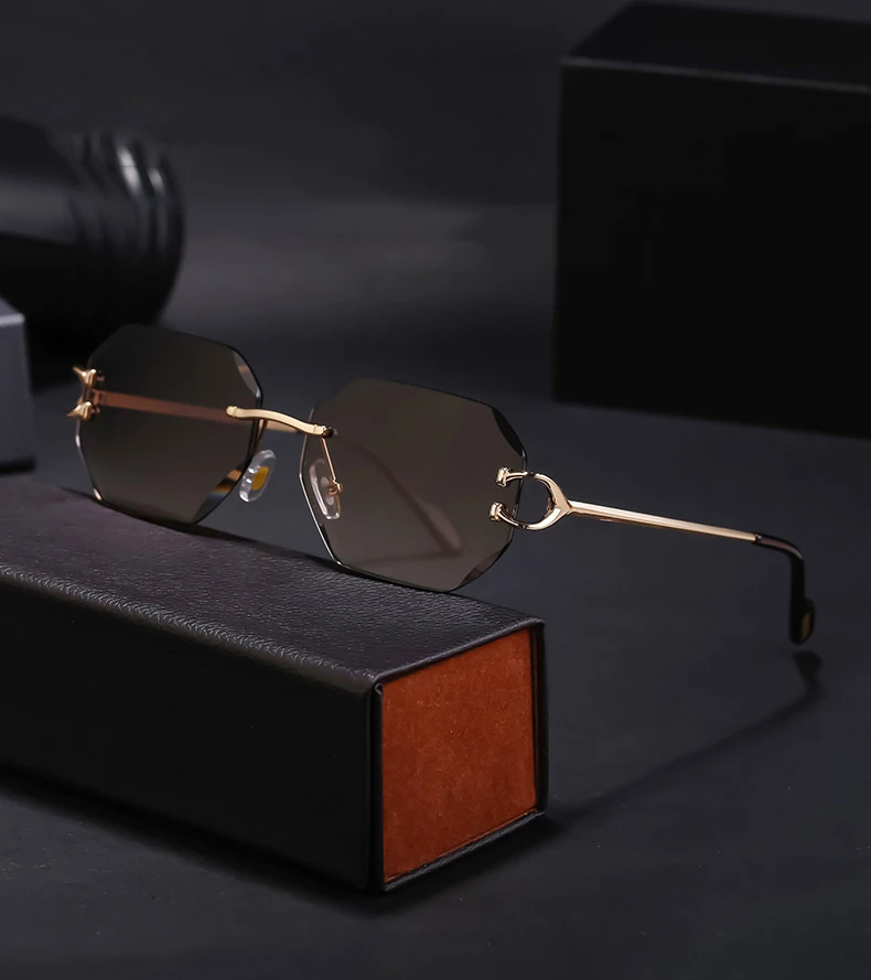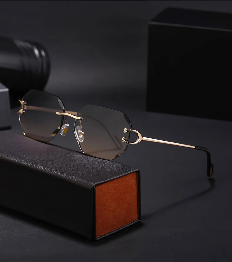RBB Luxury Rimless Sunglasses – Unisex Stylish Metal Frame Vintage UV400 Mirror Shades