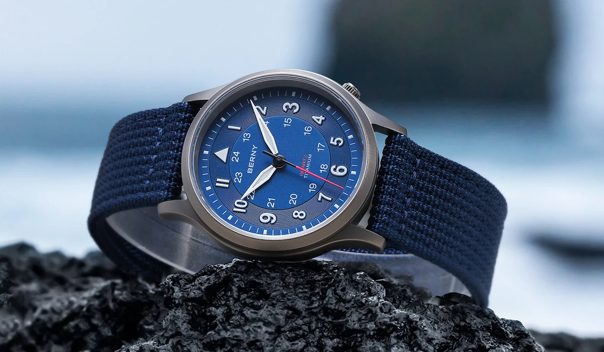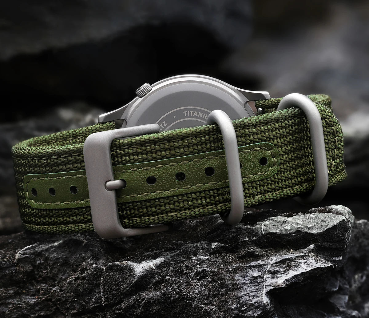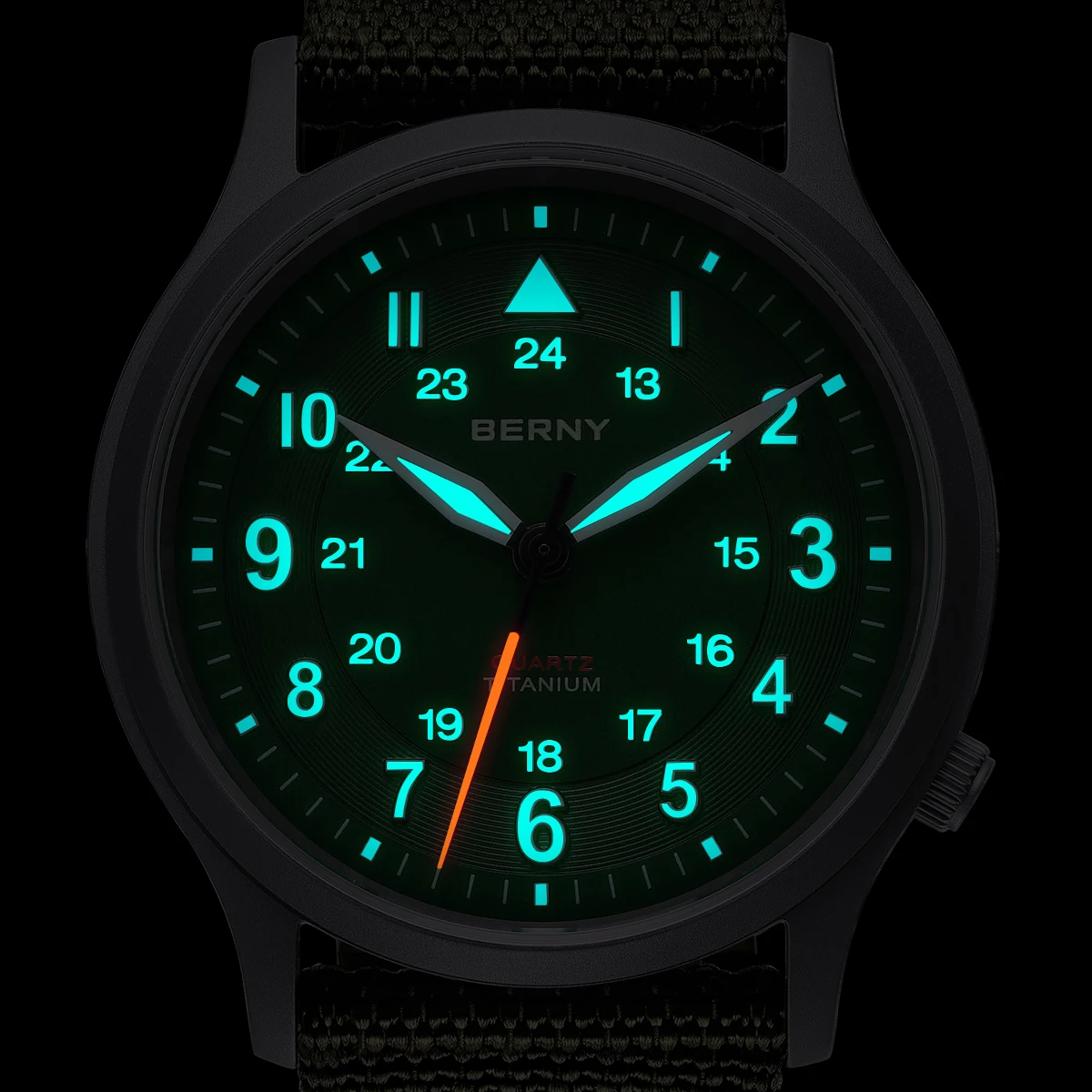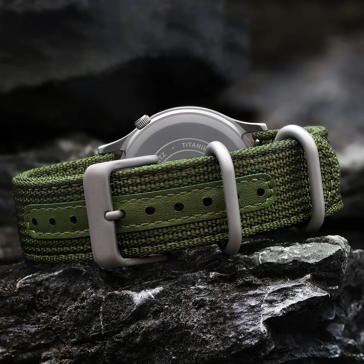 Engineered with a sapphire glass lens and internal AR coating, it offers enhanced visibility, reduced glare, and superior scratch resistance. The canvas strap with titanium pin buckle ensures breathable, comfortable wear whether you're on a trail or in the office.