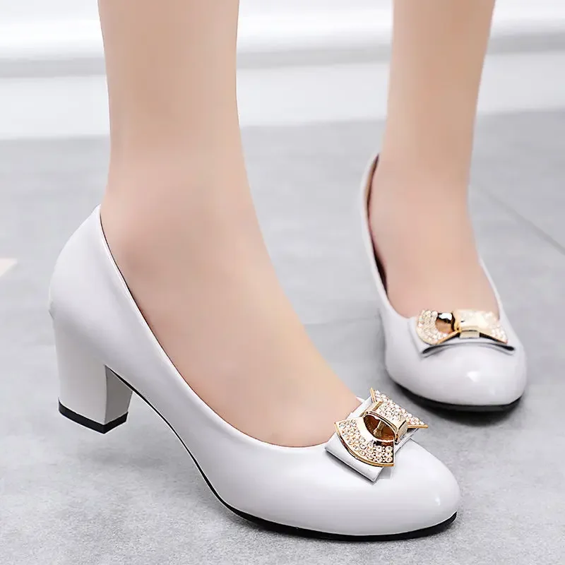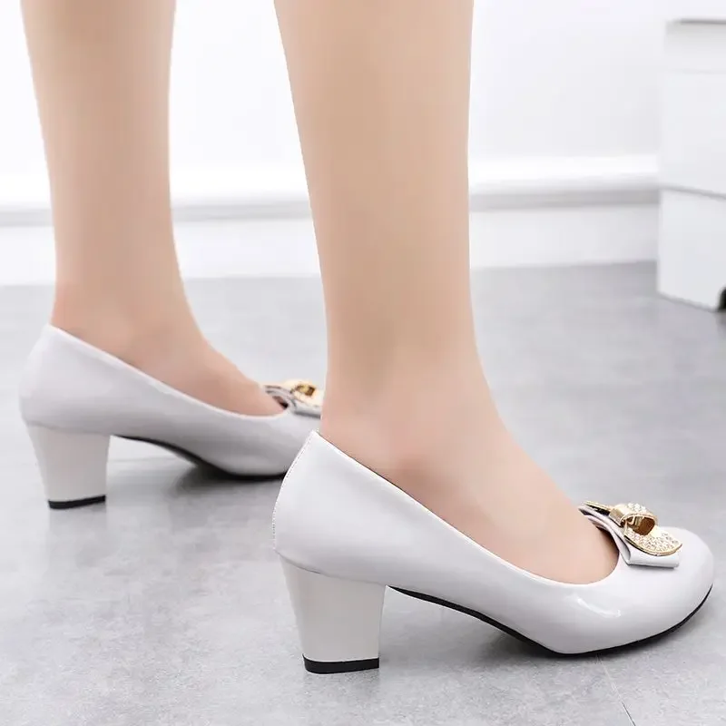 RBB Luxury Y2K Block Heel Pumps with Bow – Formal Chunky Heels for Women