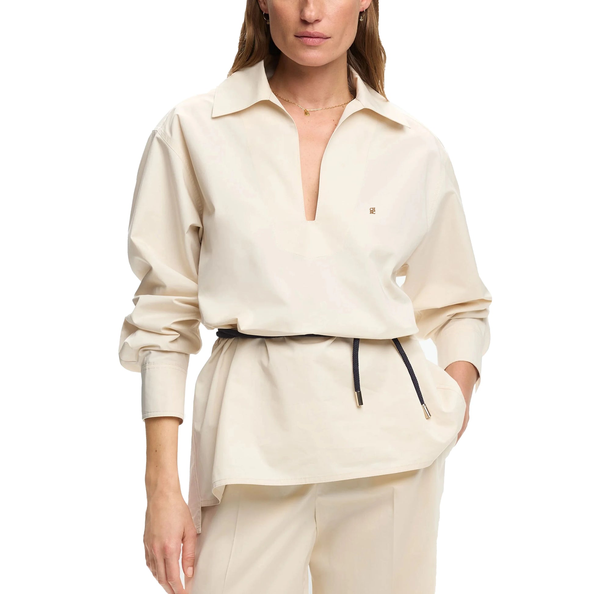 RBB Women's Elegant V-Neck Blouse – Solid Long Sleeve Office Tunic Top