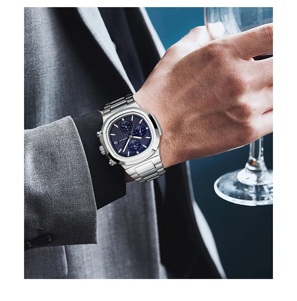 RBB Men's Luxury Quartz Watch – Stainless Steel, Square Case, Luminous & Waterproof