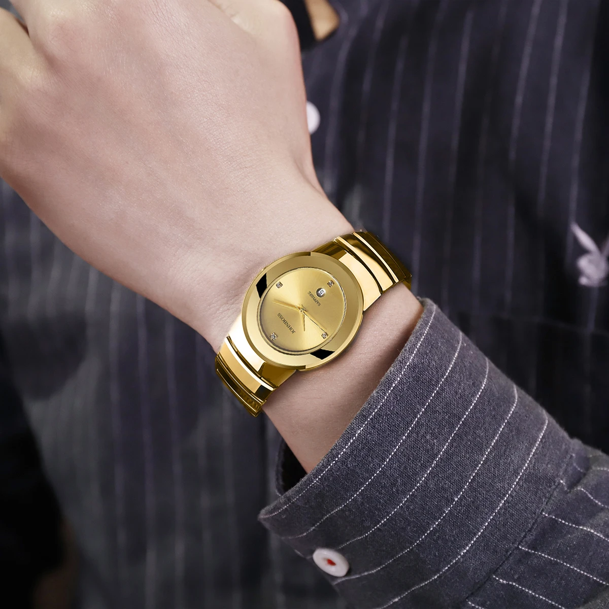 RBB Men's Oval Gold Tungsten Steel Watch – Swiss Quartz Movement, Sapphire Glass, Diamond Markers