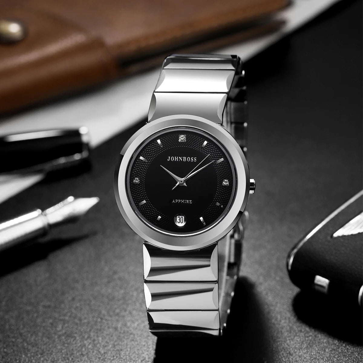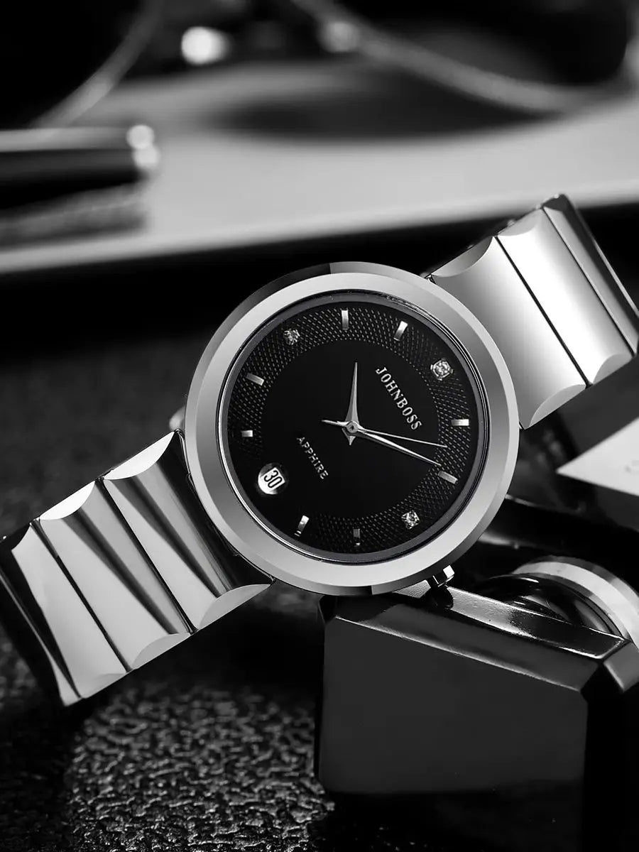 The RBB Men's Simple Quartz Watch offers minimalist elegance with exceptional durability. Designed with a slim tungsten steel case and band, this round dial timepiece features a numberless analog display, complete calendar function, and 3ATM water resistance. A refined choice for daily wear with a modern business appeal.