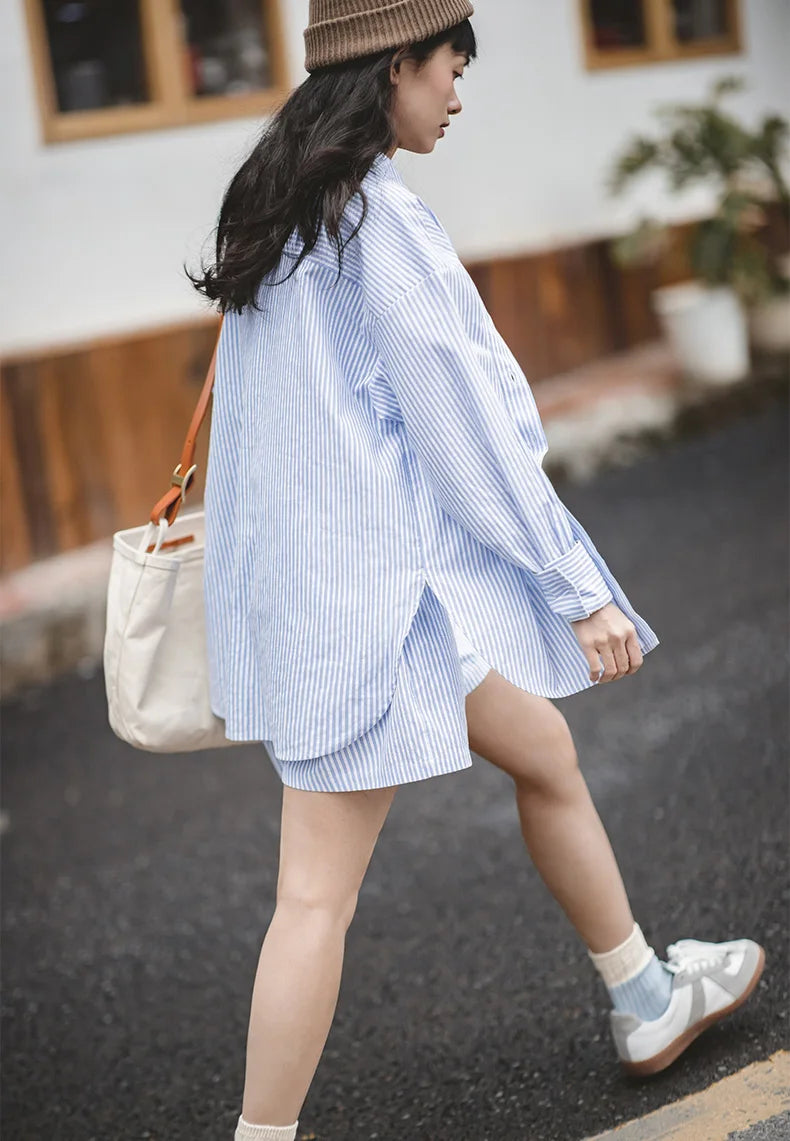 RBB Women's French Classic Striped Shirt – Oversized Long Sleeve Blouse