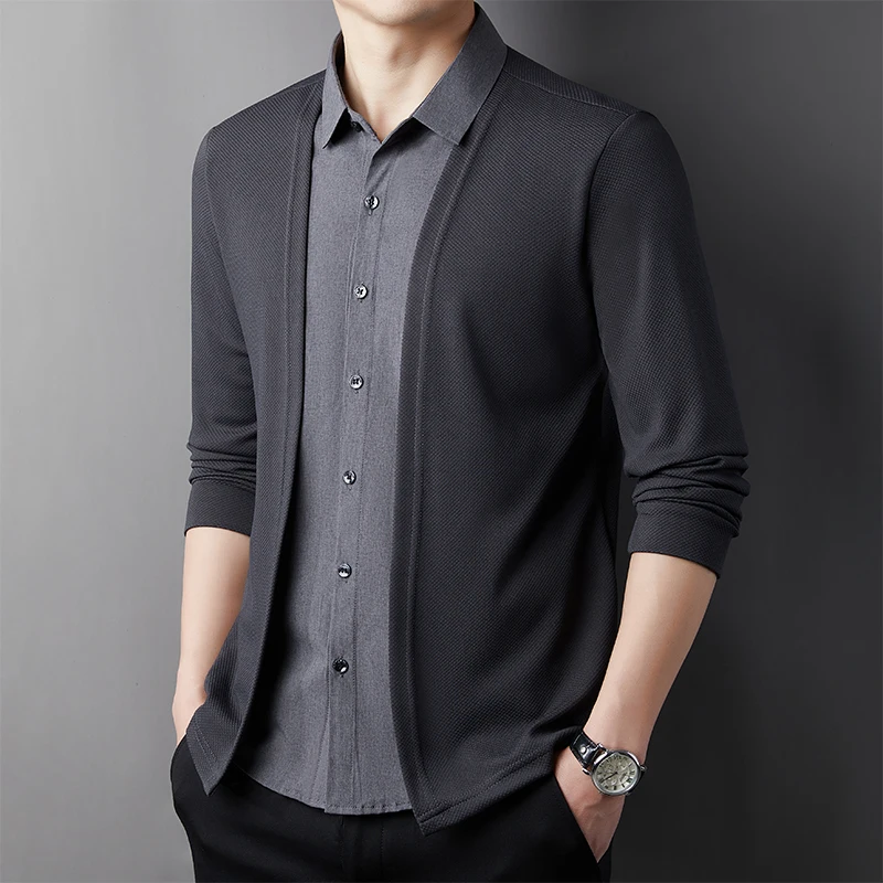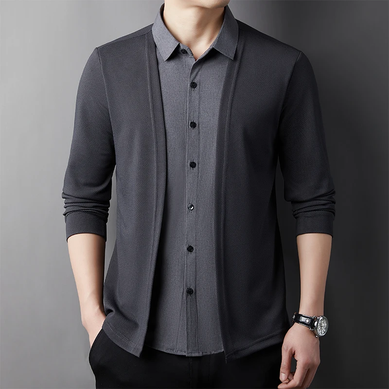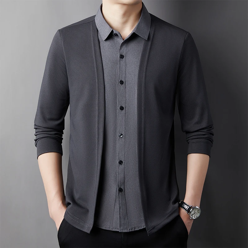 RBB Men’s Casual Long Sleeve Two-Piece Style Shirt – Comfortable Korean Fashion