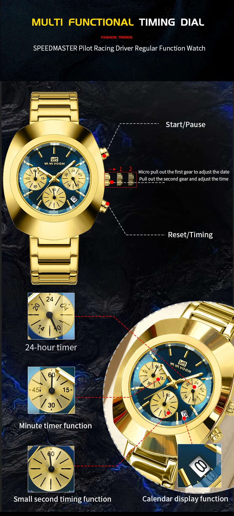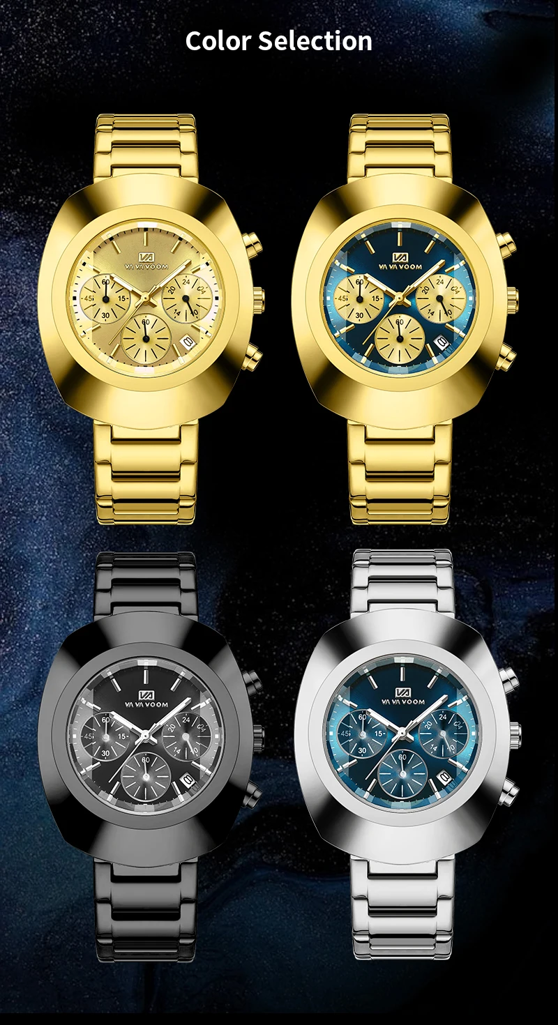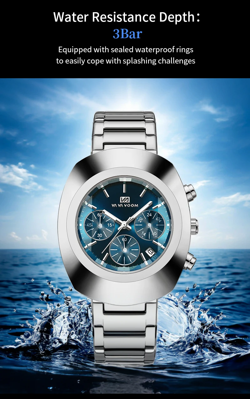 Command attention with the RBB VA VA VOOM 2513, a luxury men’s quartz watch crafted for those who value power, precision, and prestige. With a bold oval dial, durable stainless steel strap, and chronograph stopwatch function, this timepiece is designed to enhance your presence—whether in a boardroom or at an evening event.
