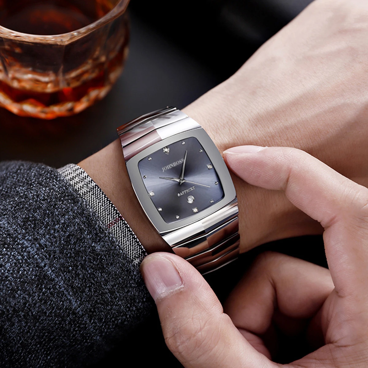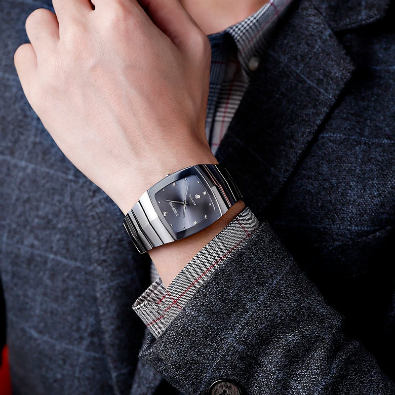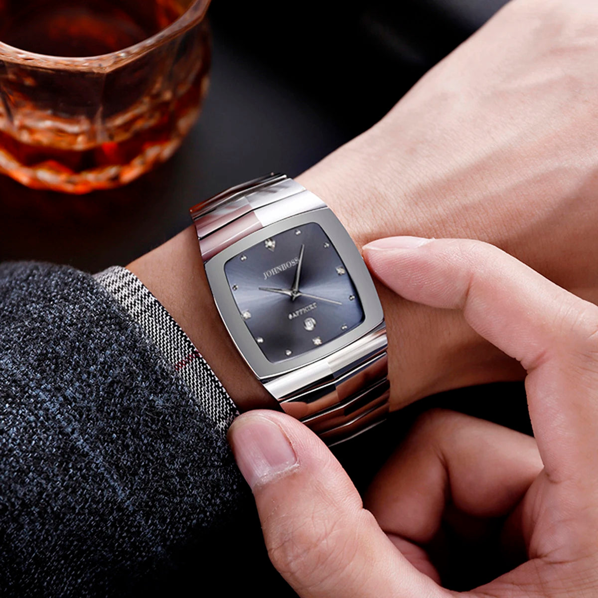 RBB Men's Tungsten Steel Watch – Square Dial, Swiss Ronda Quartz Movement, Sapphire Glass
