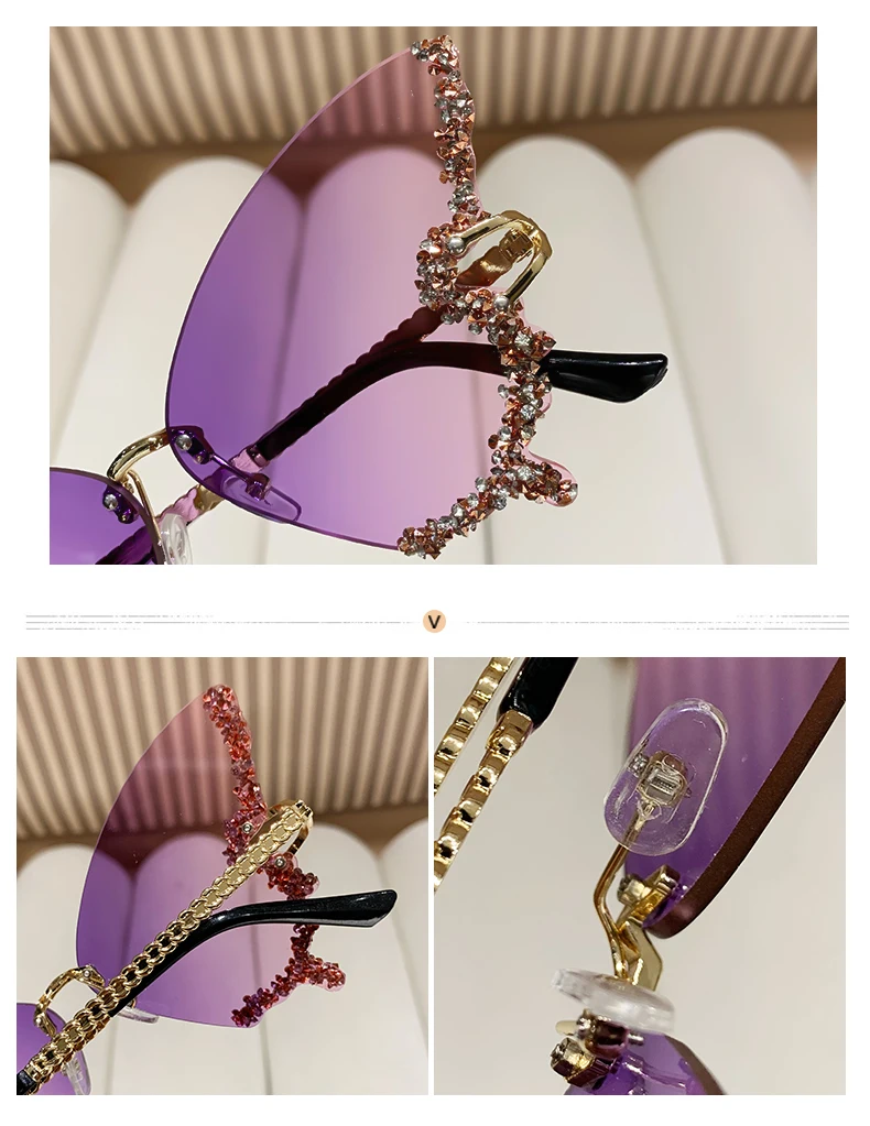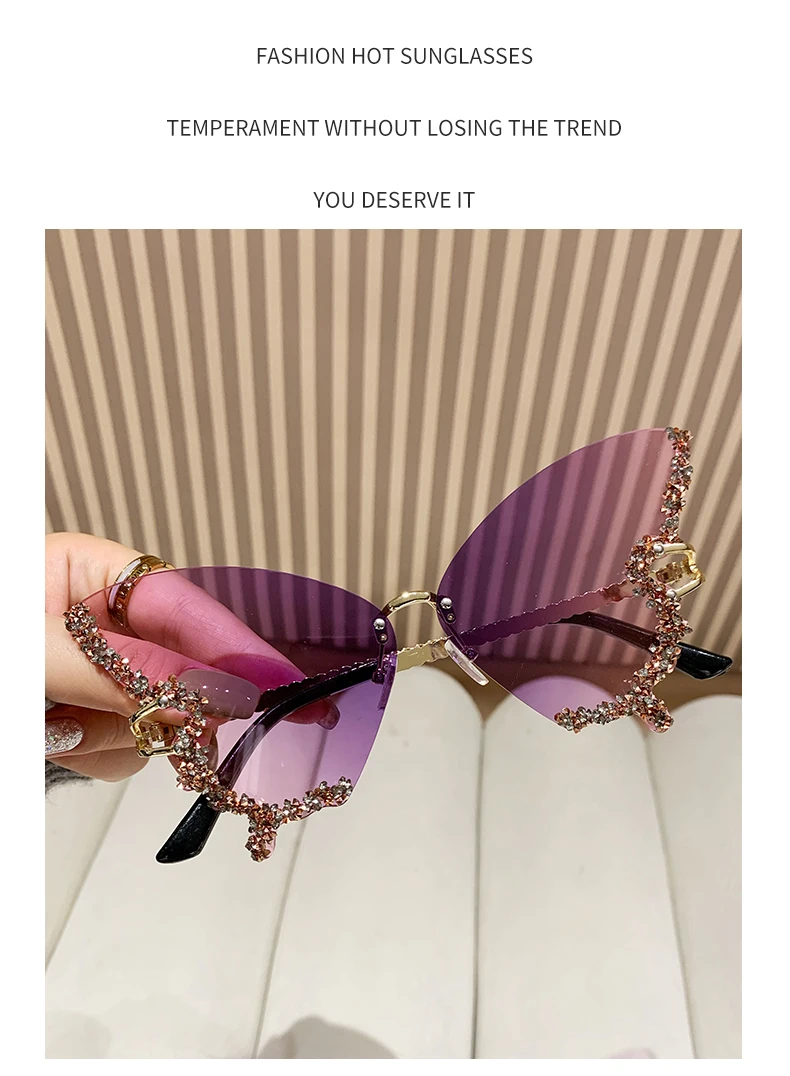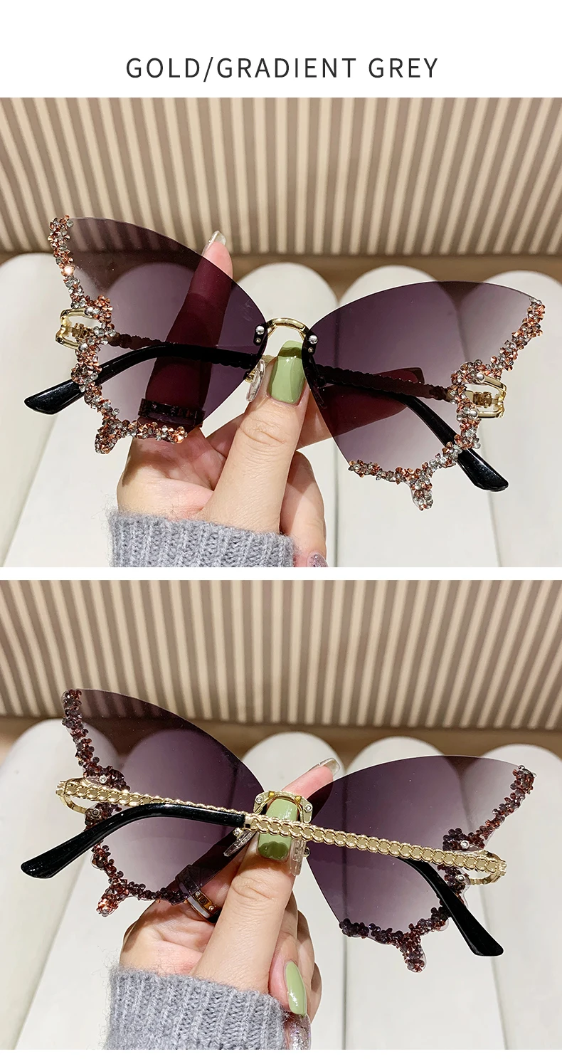 RBB Y2K Oversized Butterfly Sunglasses for Women – Diamond Edge Design, Fashion Street Style