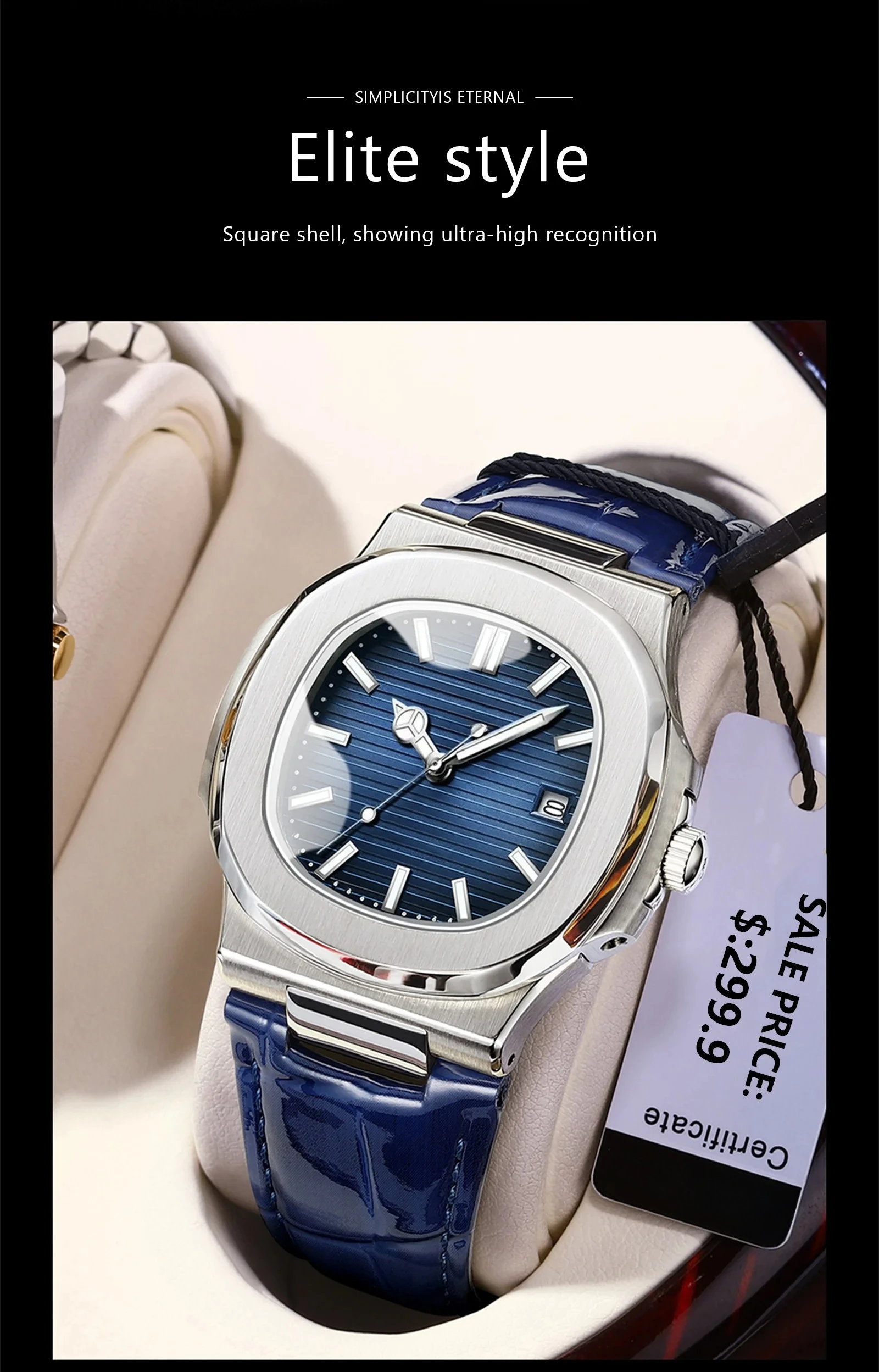 Elevate your style with the RBB POEDAGAR Luxury Men’s Square Quartz Watch, designed for the modern man who values both elegance and function. Featuring a sleek square stainless steel case paired with a premium leather strap secured by a classic buckle, this timepiece combines sophistication with comfort.