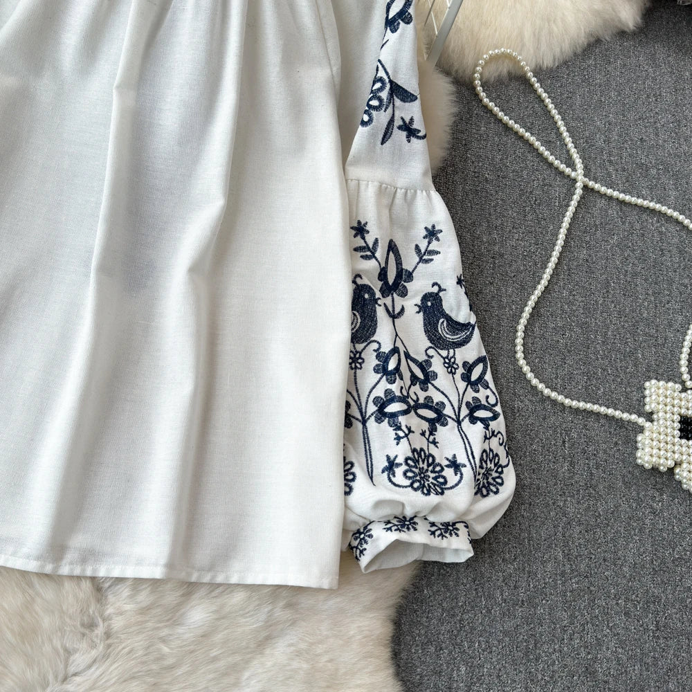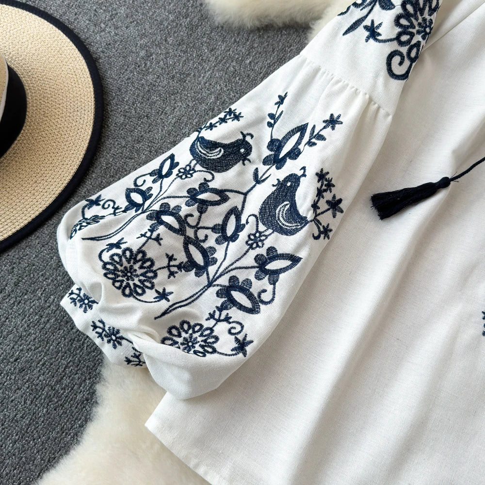 RBB Women's Retro Ethnic Embroidered Shirt – Style Loose Long Sleeve Blouse