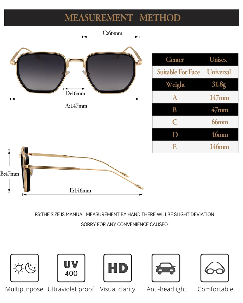 RBB Retro Polygon Square Sunglasses – UV400 Gradient Vintage Eyewear for Men & Women