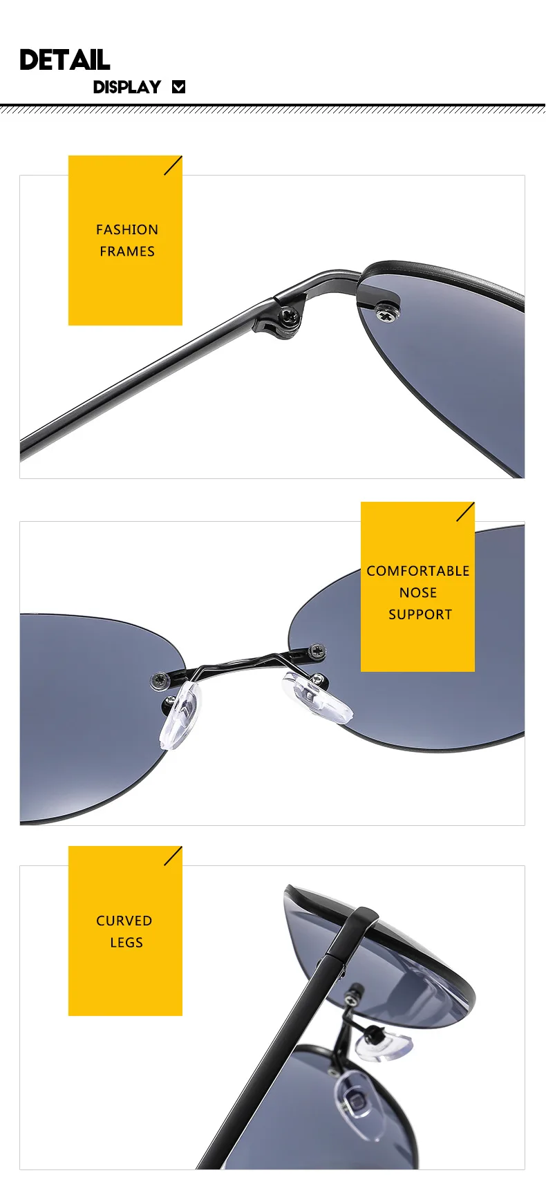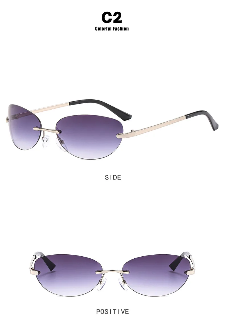 RBB Y2K Oval Rimless Sunglasses – Women’s Fashion Wrap Around Eyewear