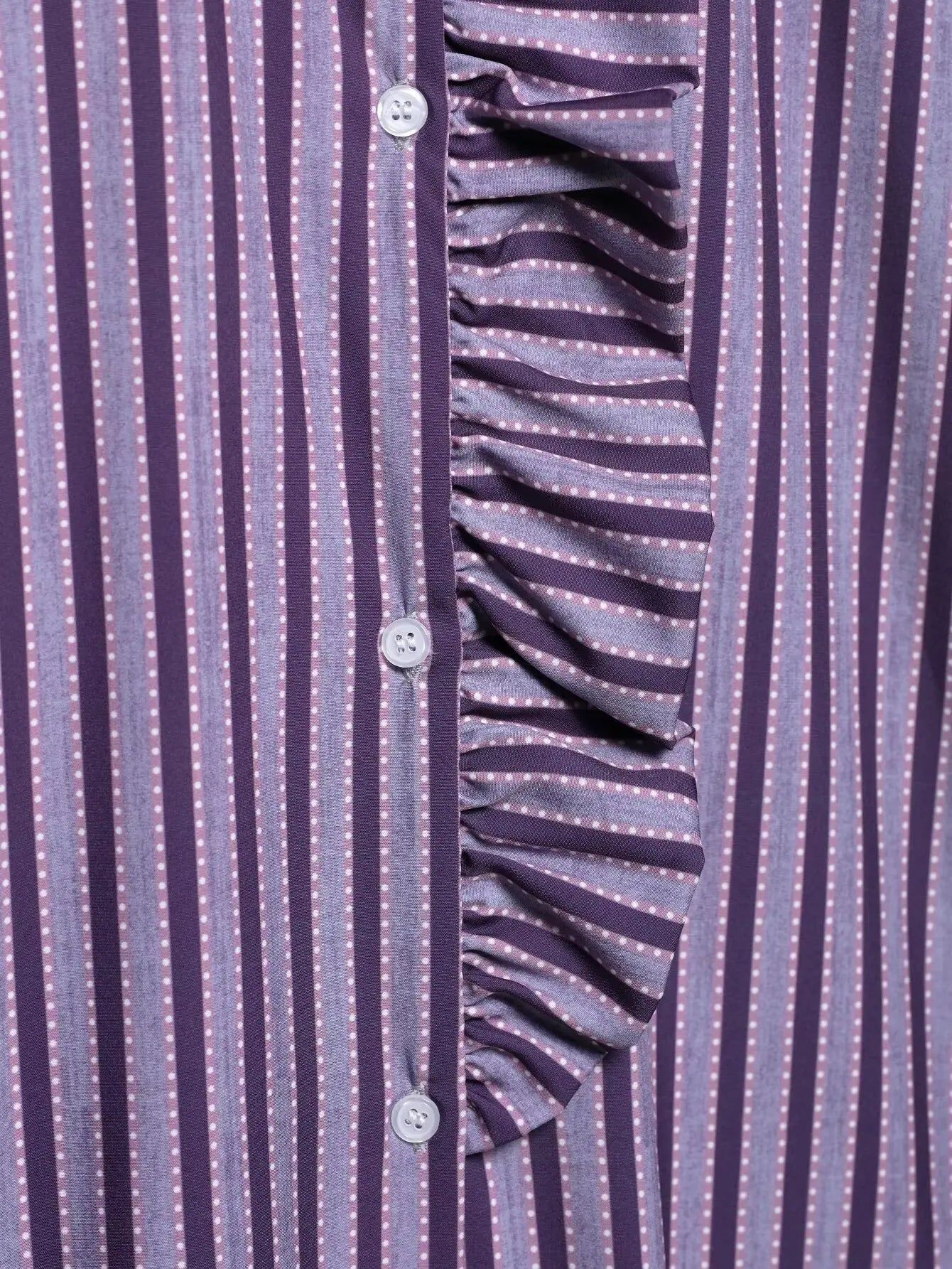 Ruffles Women Sweet Shirts 2025 Fashion Ladies Casual Purple Striped Blouses for Party Female Chic Tops Girls Cute Clothes