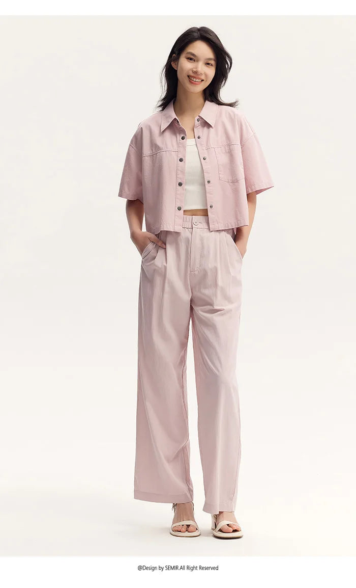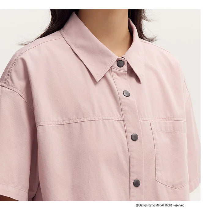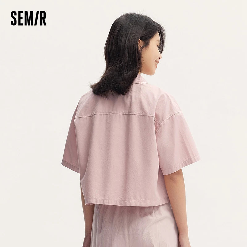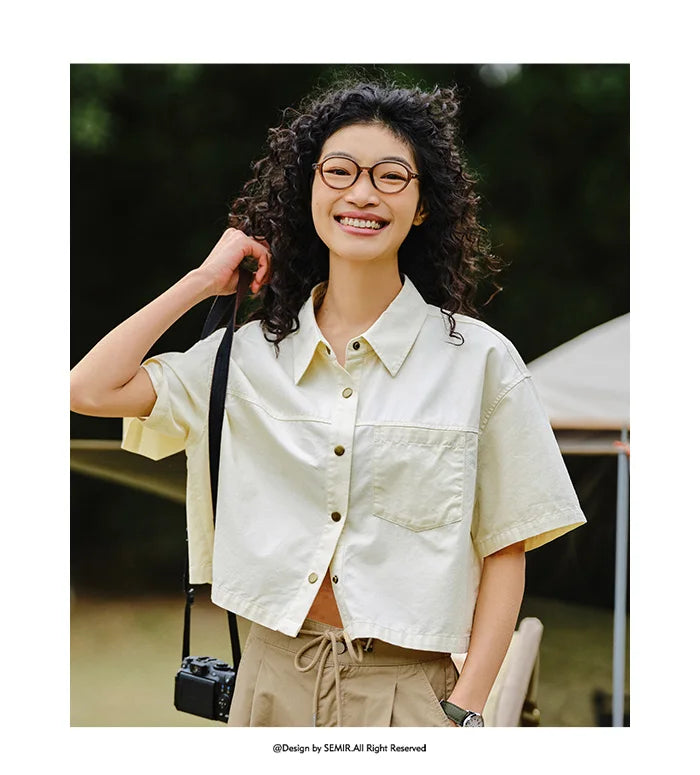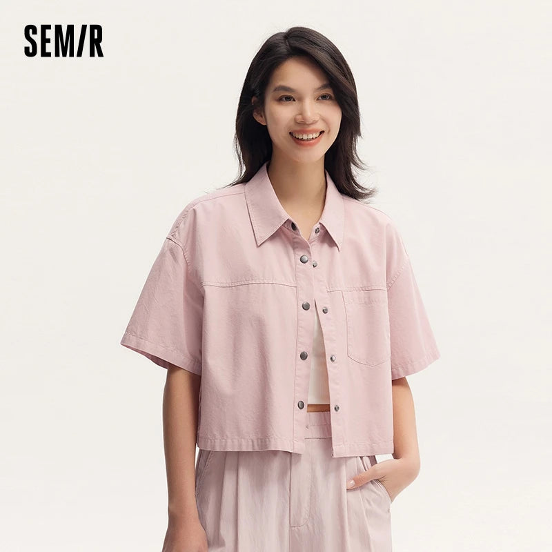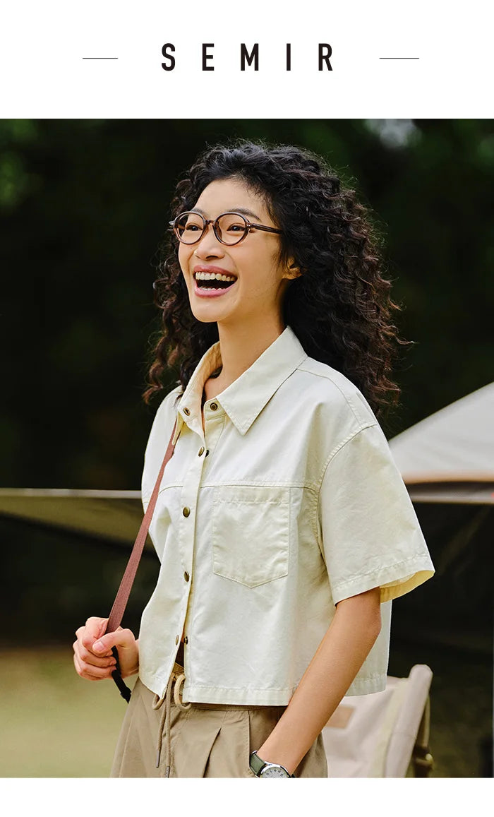 Semir Women Blouse 2024 Summer Short Blouse With Small Collar Loose Fit And Vintage-Inspired Design Shirt Female