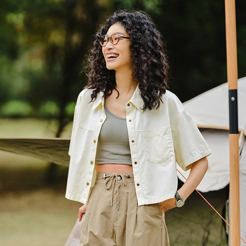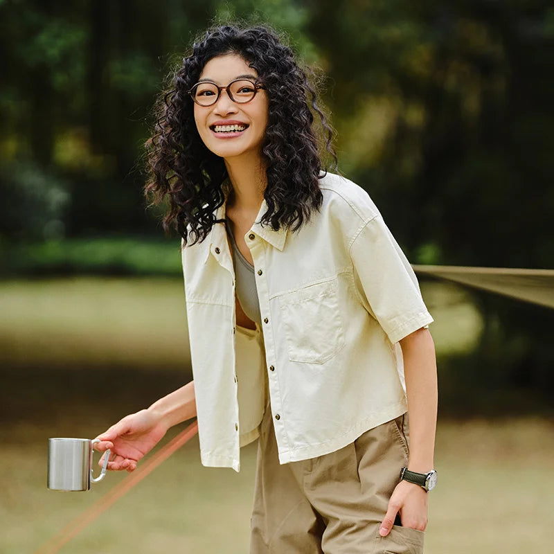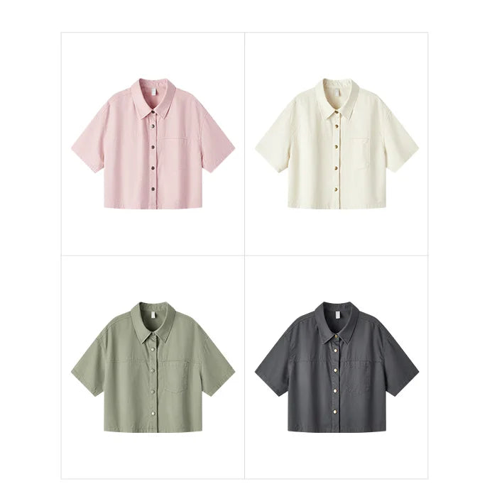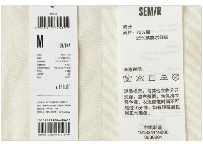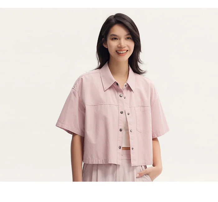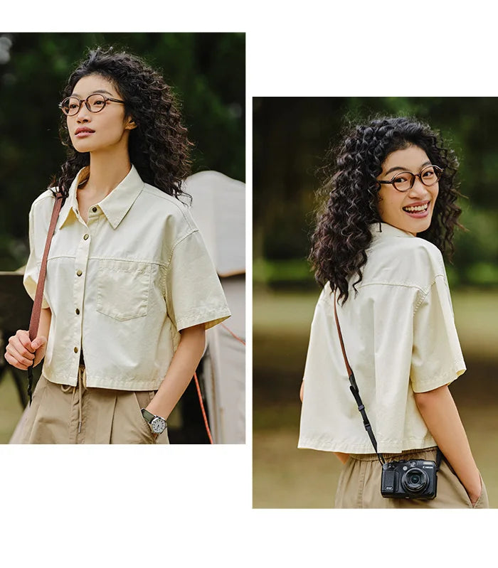 Semir Women Blouse 2024 Summer Short Blouse With Small Collar Loose Fit And Vintage-Inspired Design Shirt Female