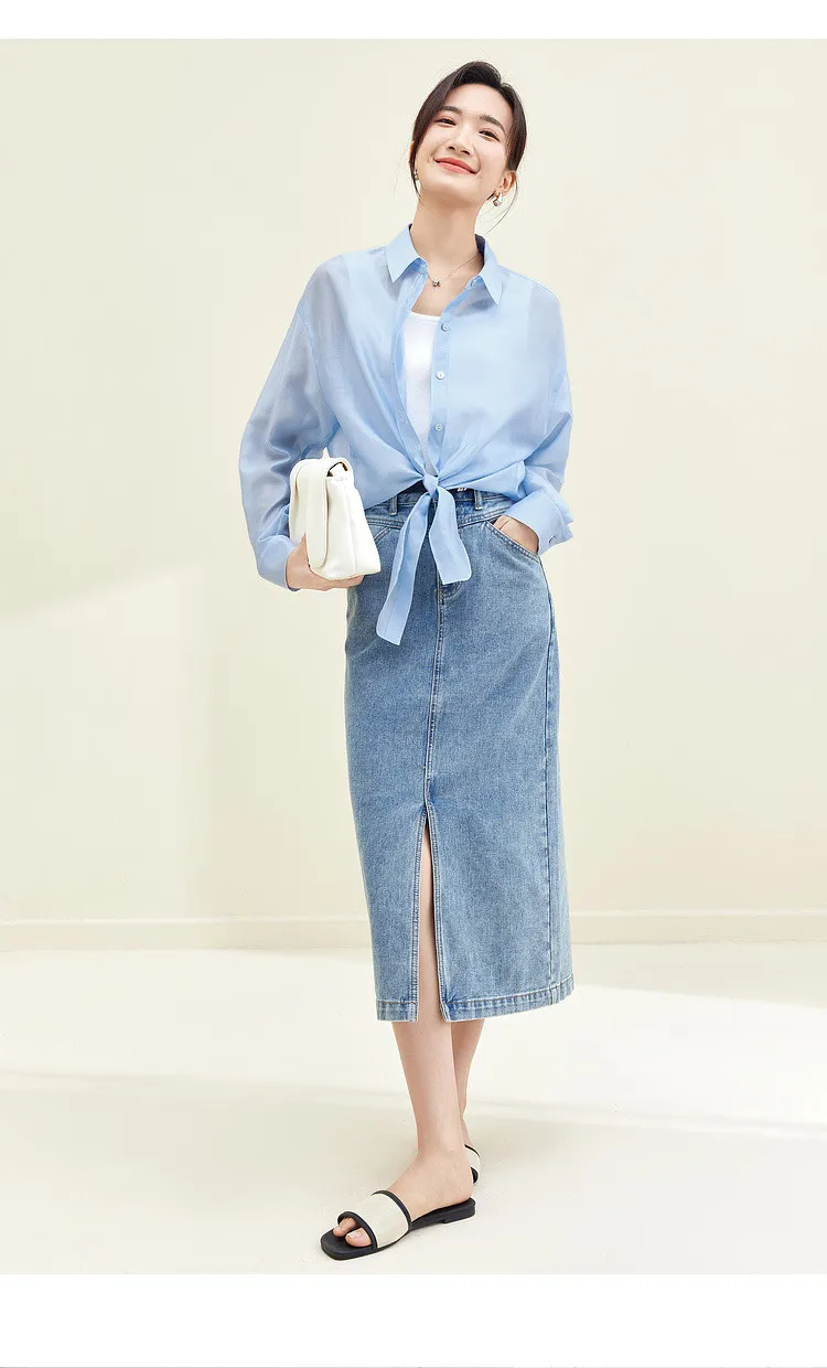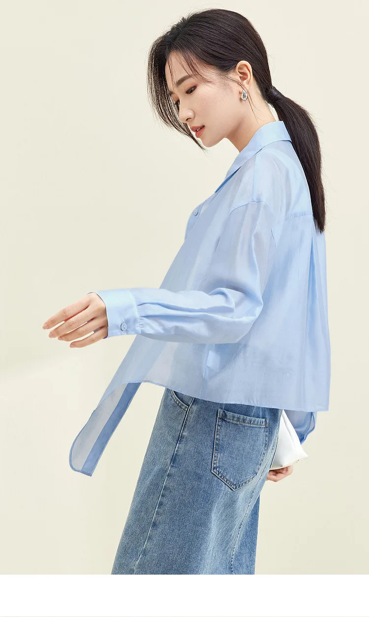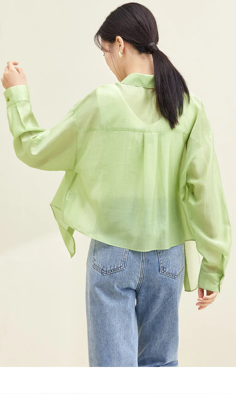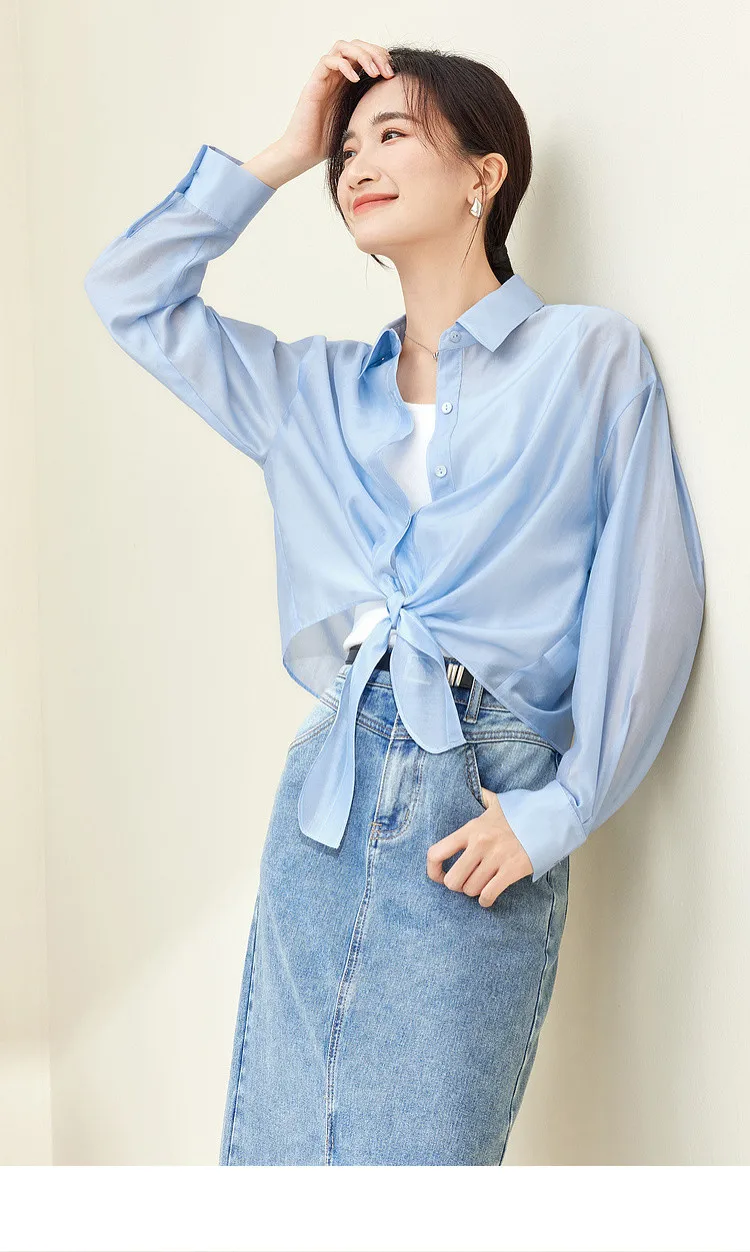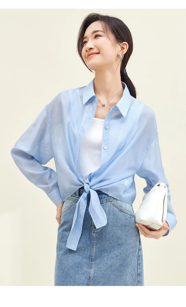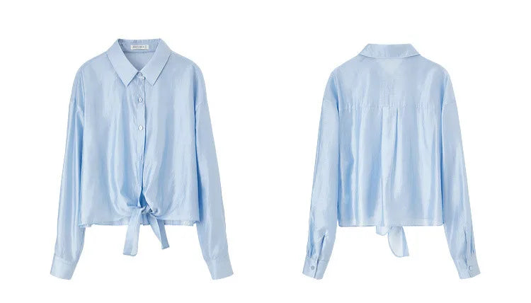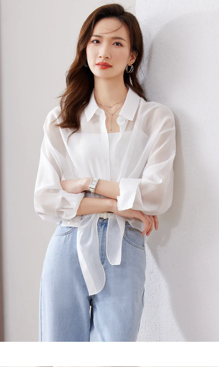 SENTUBILA Sheer Knot Shirts Women 2025 Elegant Casuals Long Drop Sleeve Button Up Shirts & Blouses Female Clothes 132C48674
