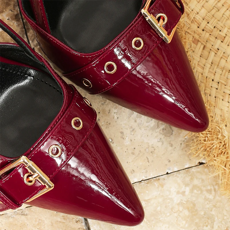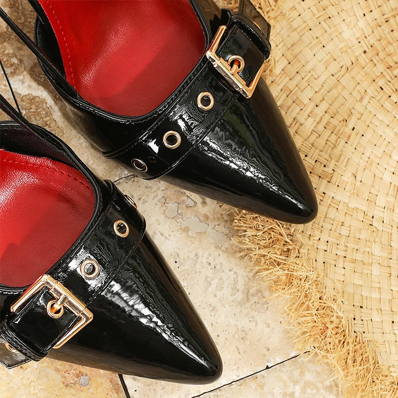 RBB Women’s 9cm Glossy Slingback Pumps – Buckle Strap Pointed-Toe Heels (EU 34–46)