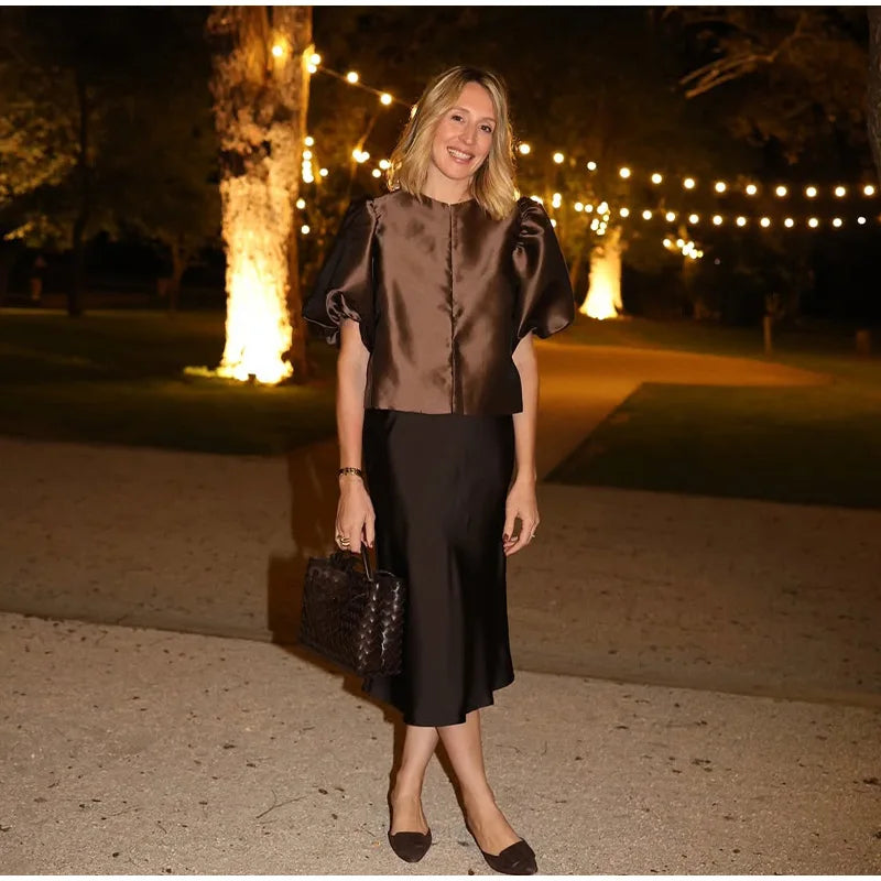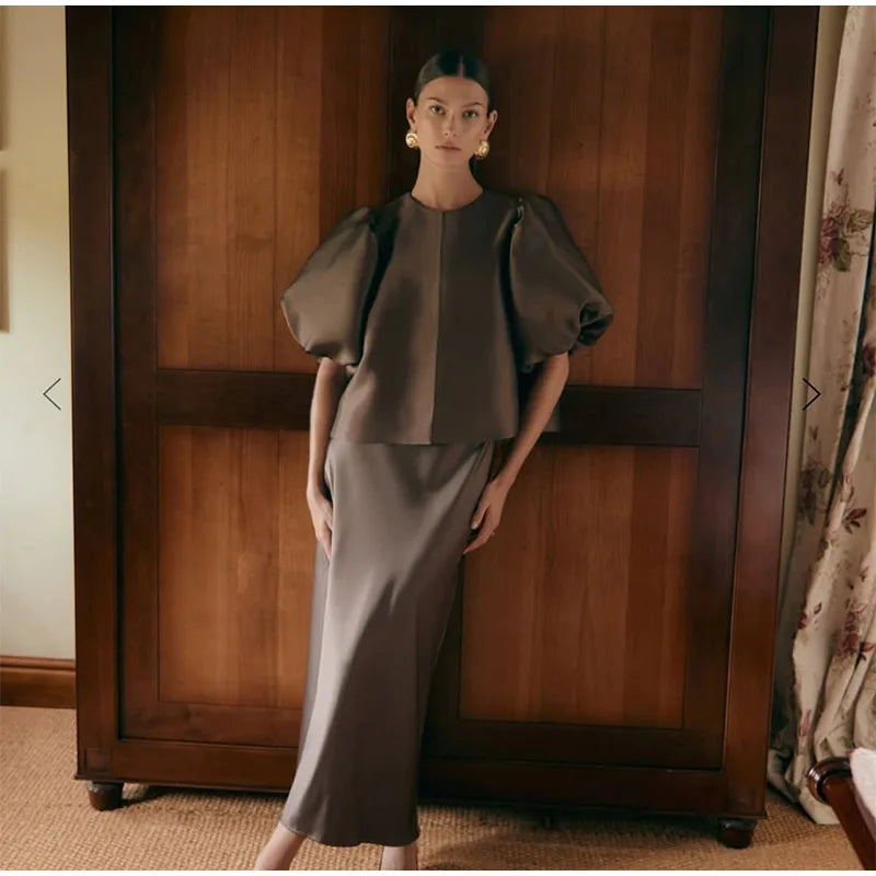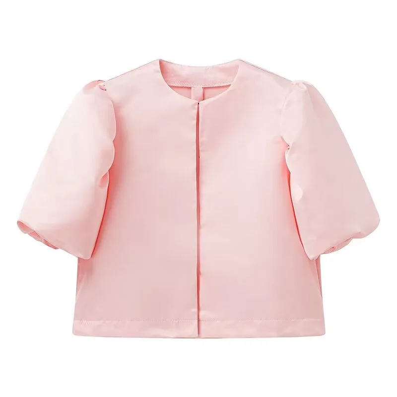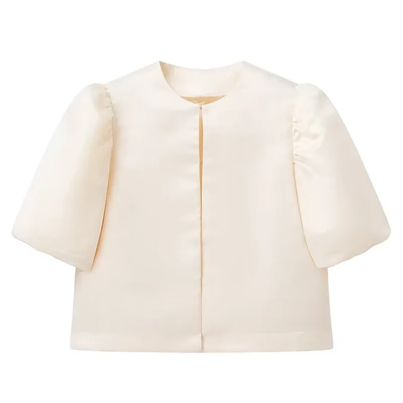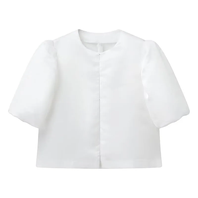 Spring Summer New Women's Fashion Casual Shirt Satin Bubble Sleeves Round Neck Loose Short Top Female Elegant Solid Blouses