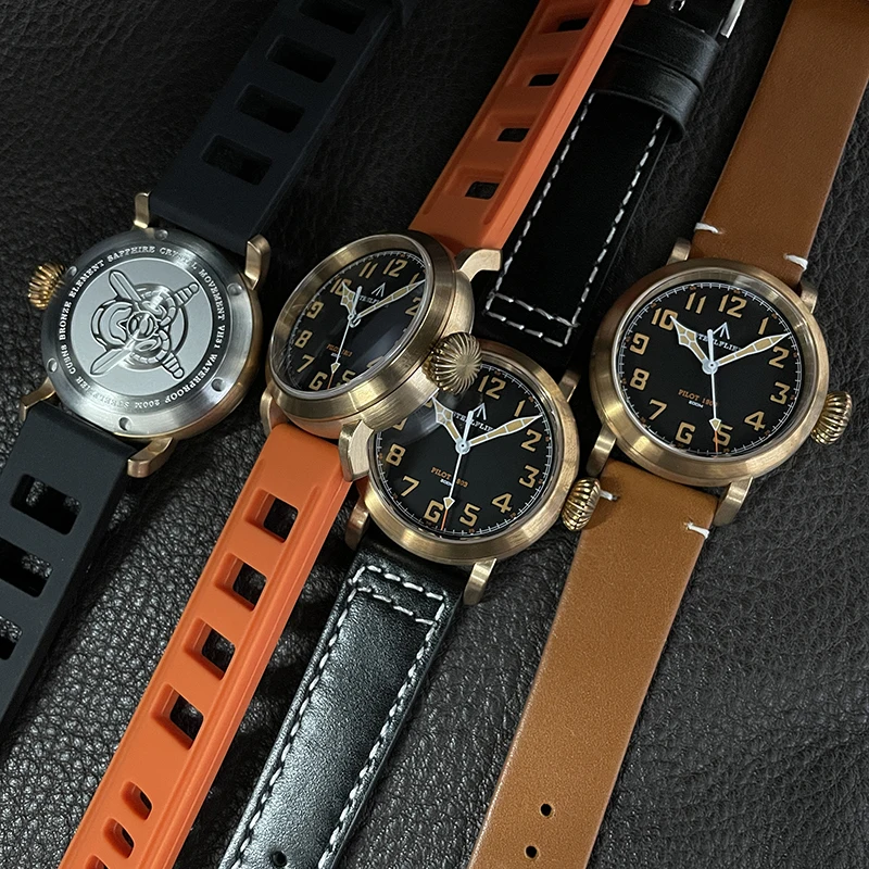 RBB 40mm Men's Bronze Pilot Quartz Wristwatch – 20ATM Waterproof, Luminous, Sapphire