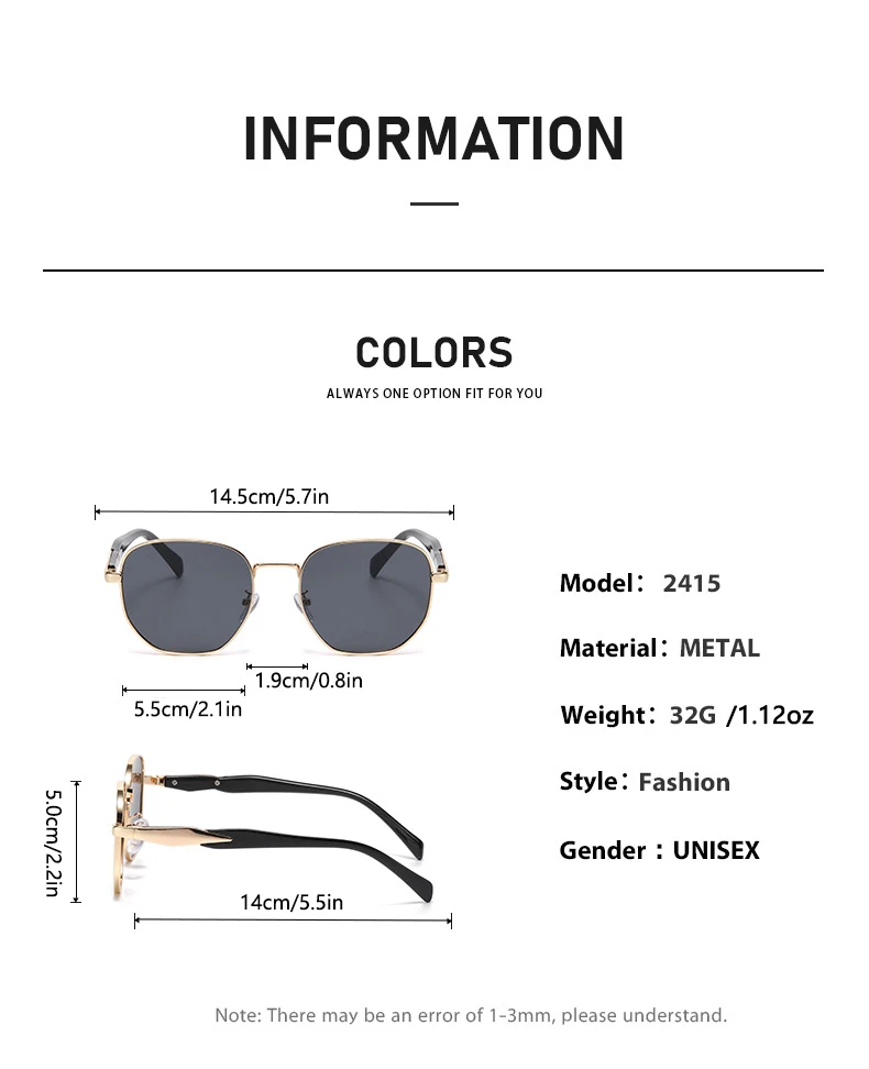 Frame Color Options: Black, Grey Pink, Brown, Green, Gold, Silver, Orange, etc.