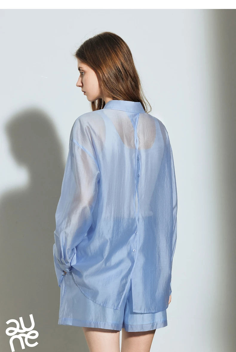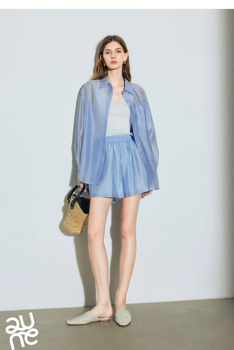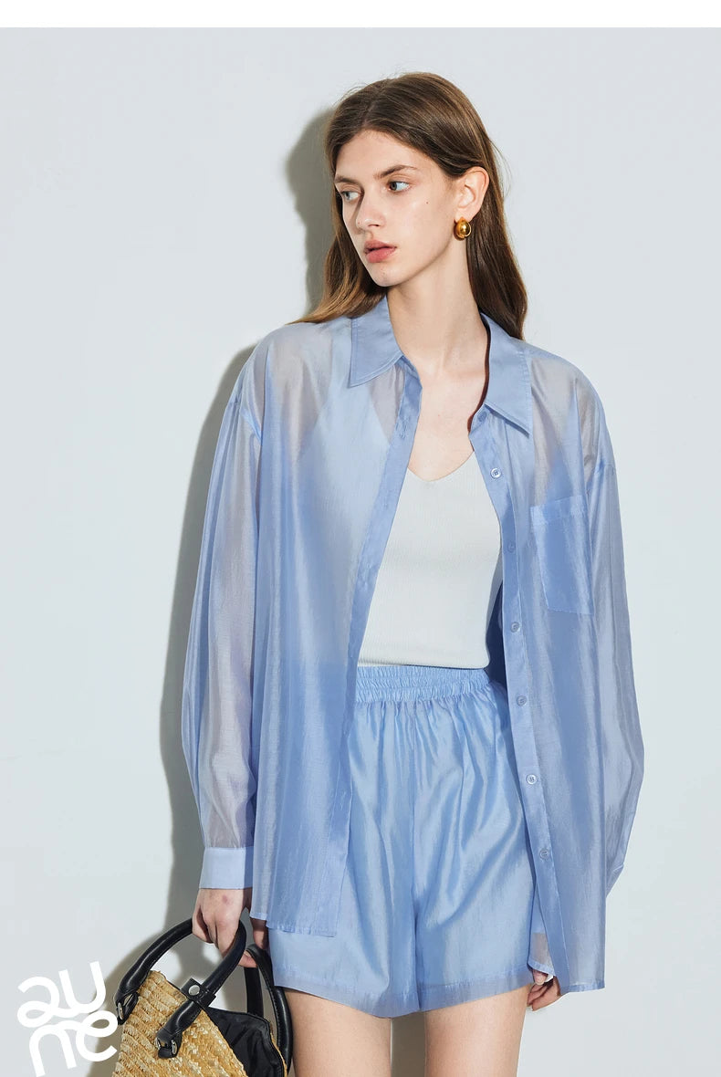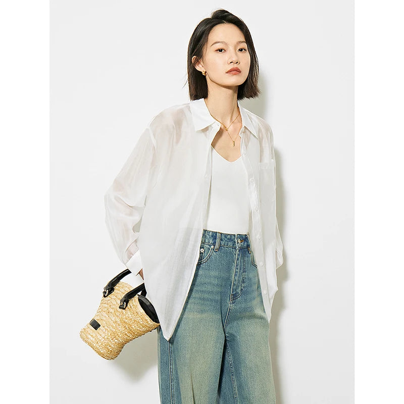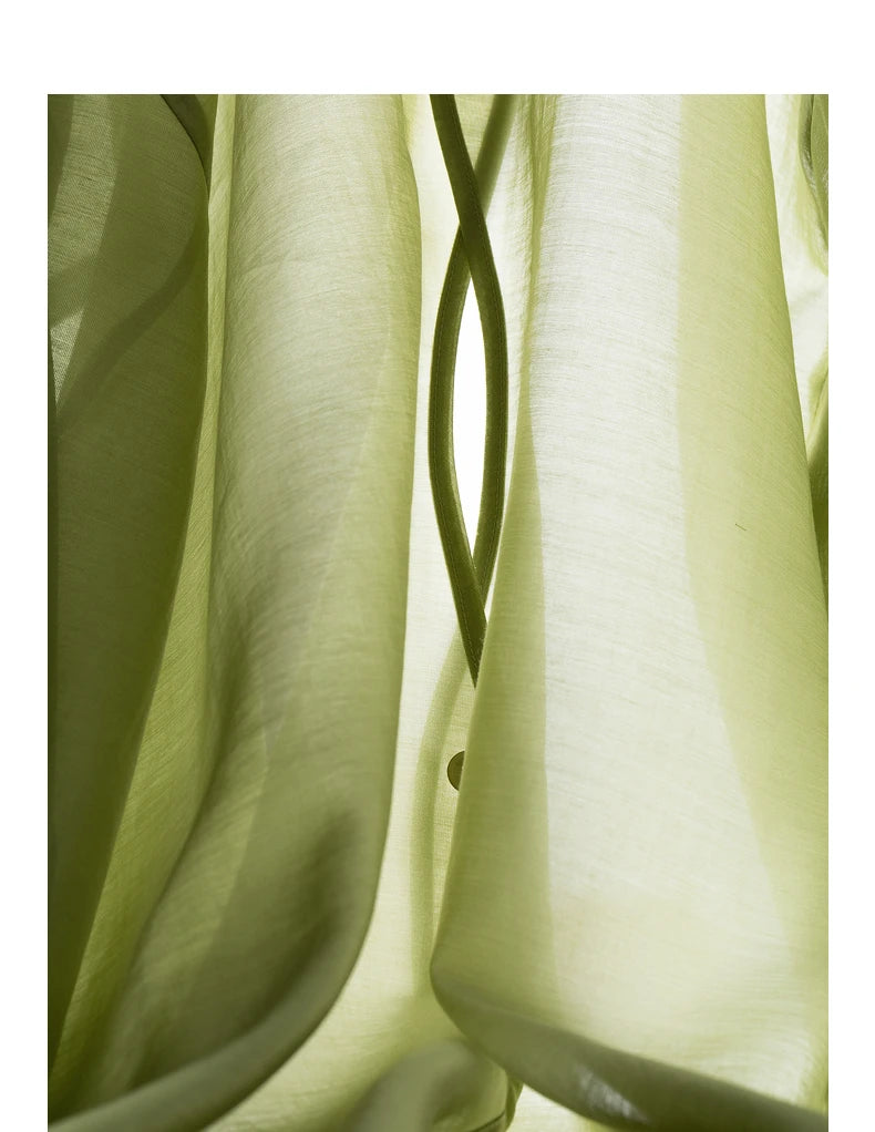 TOYOUTH Women French Mustard Green Lyocell Shirt 2025 Summer New Lightweight Sun Protection Tops