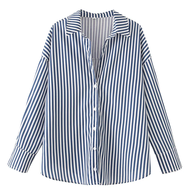 TRAF 2025 Women's Shirt Long Blue Shirt Women Spring Long Sleeve Oversize Shirts Blouses Korean Style Casual Button Up Shirts