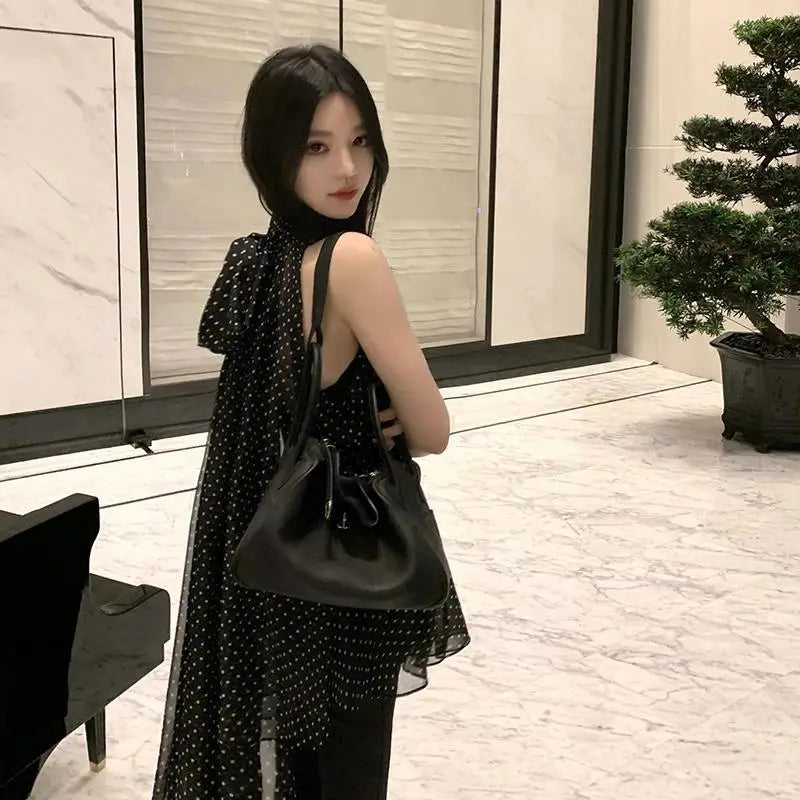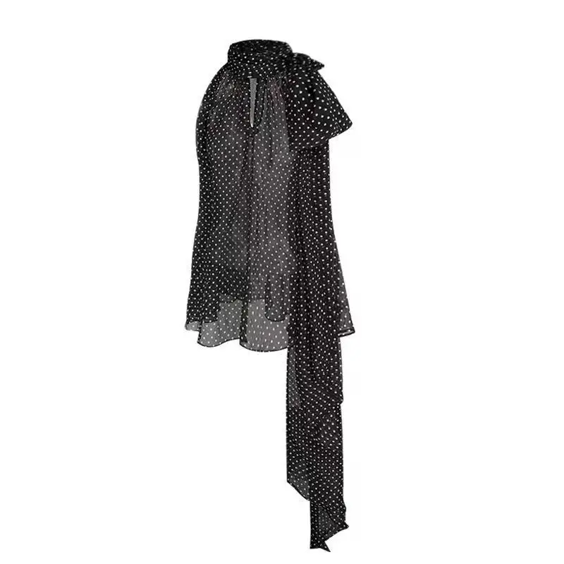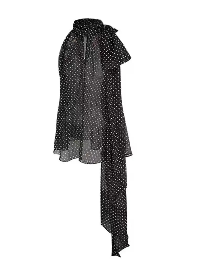 Women Blouses Sleeveless Polka Dots Loose Kawaii Lace-up Sweet Elegant Bow Temperament Design Korean Style Summer Fashion Chic