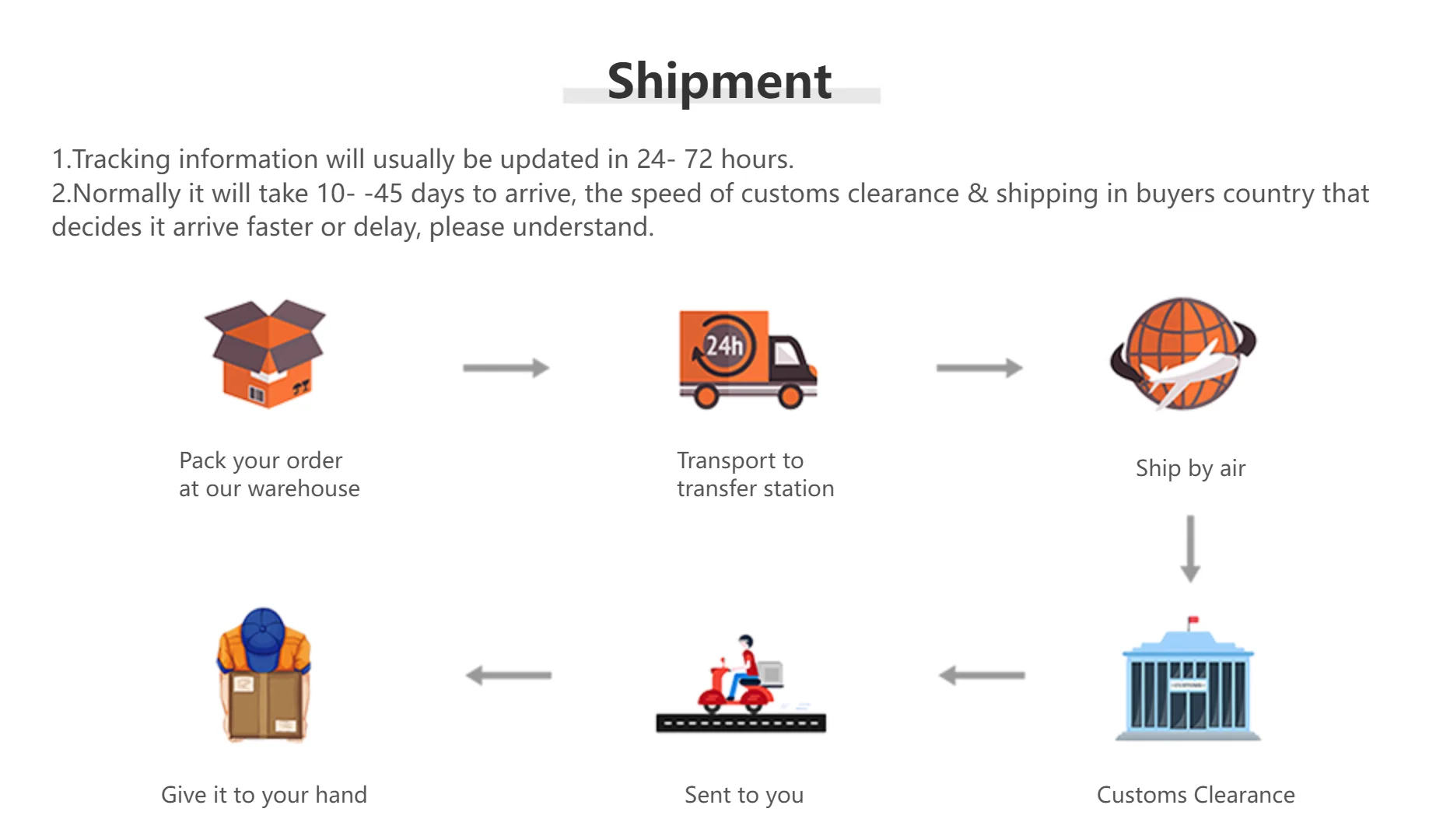 3. Due to the variations in computer displays, the product color may vary slightly when received.