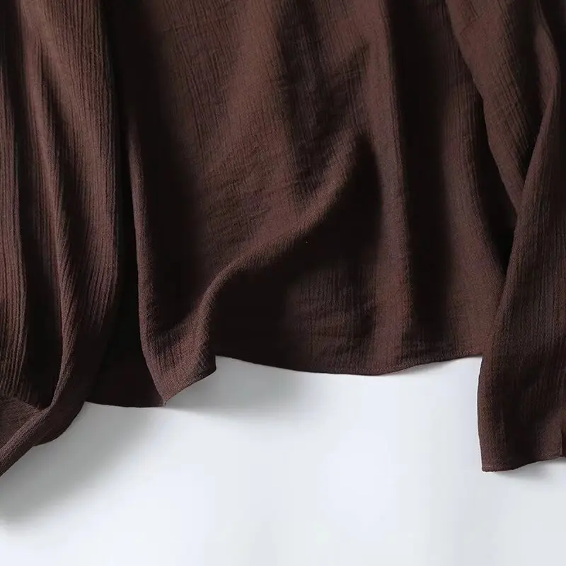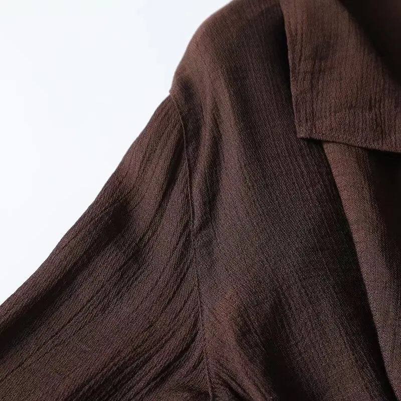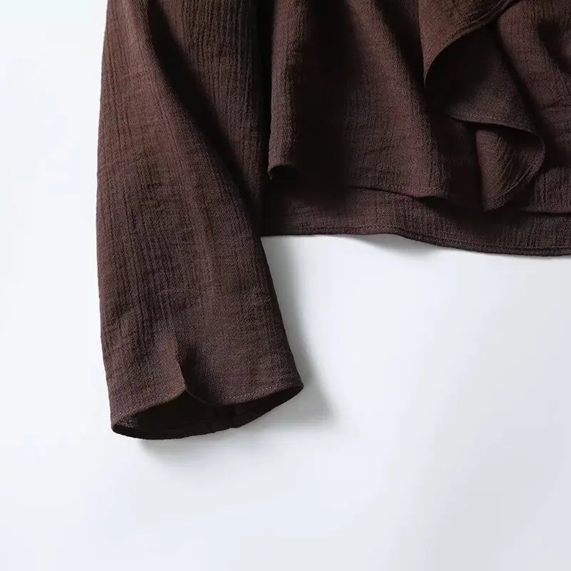 Spring 2025 Women Brown Long Sleeve V Neck Ruffle Shirt